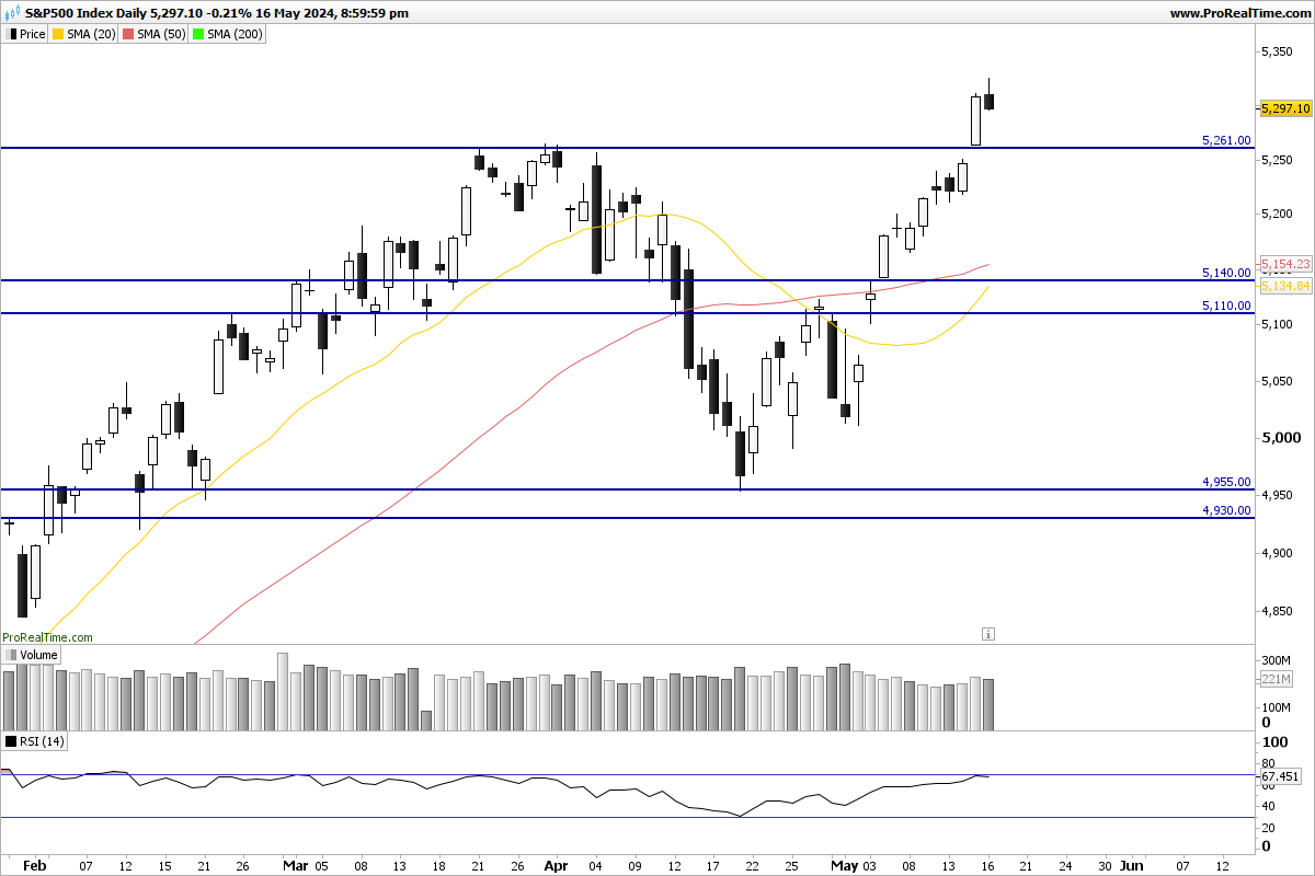 Sim, considero os 5200 e vejo que um acordo Hamas/Israel possa animar os touros para tentarem máximos no Spx Porém, se esses máximos forem alcançados de rajada, aí ponderaria uma ferro curto a espreitar um duplo topo. :wink: