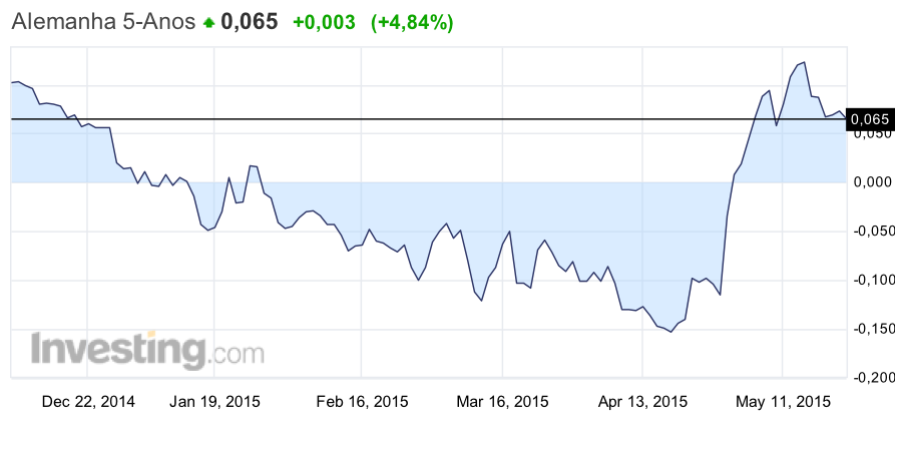 O juro das obrigações a 10 anos teima em ficar lá em cima, a 5 anos já é, de novo, positivo e a 1 ano continua a subir. Se mantiver este rumo, o Euro tenderá a valorizar e o DAX a sofrer. Pelo contrário, se recuperar a anterior tendência descendente será positivo para as posições longas em acções alemãs.