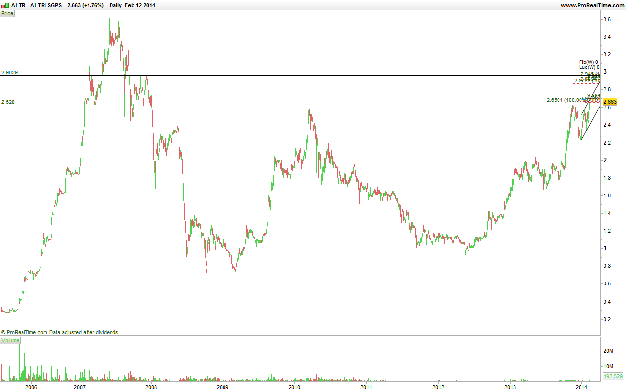 Parece ter aguentado bem na zona dos 2,61. Estou longo a 2,63 com target nos 3 e stop loss nos 2,4.