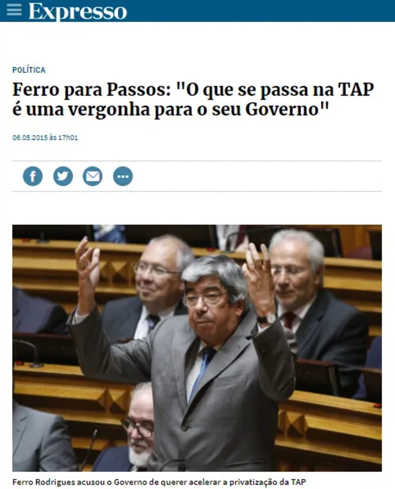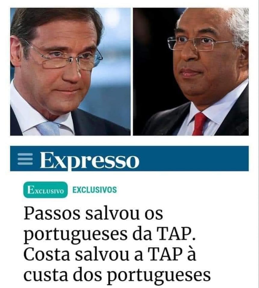 Acontece que quando o Kosta perdeu as eleições, para conseguir formar governo com a ajuda do PCP e BE uma das condições desses partidos, entre muitas outras que nos fazem estar na miséria que estamos, era a reversão da privatização da TAP, pelo que o manhoso teve de aceder para ser indigitado PM, situação que nos custa 3,2 M€, mas lá está a culpa é do Passos, por isso siga