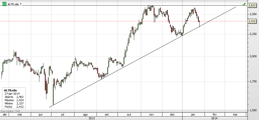 João, a ALTRI tem uma resistência forte nos 2,5... tendo lá batido e não a tendo furado acredito que vai seguir a tendência dos ultimos meses e provavelmente irá retrair até tocar a linha de tendência no espaço de 2/3 semanas à cotação de 2,2... € Se não vier, melhor para ti