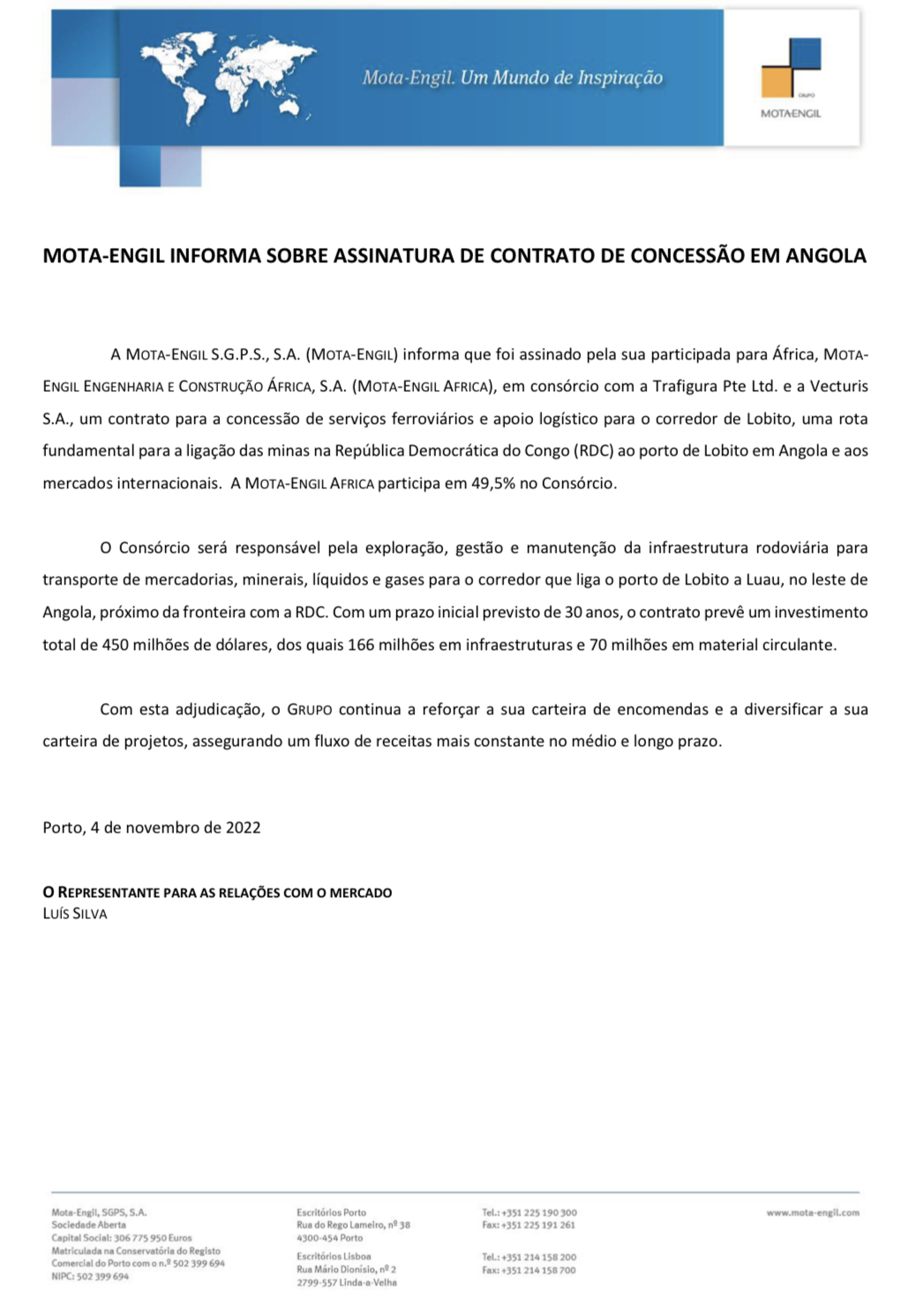 Relativamente à carteira de encomendas da Mota, parece-me excelente e acredito que grande parte já terá sido negociada com as condicionantes da nova realidade. No entanto, não faz sentido extrapolar isso para os resultados anuais, porque serão obras a concluir nos próximos anos, não neste.