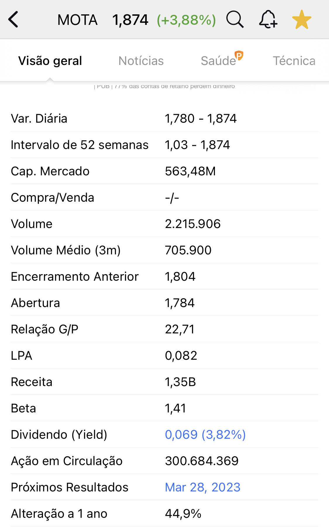 Alguém faz ideia de quanto será o dividendo da Mota?