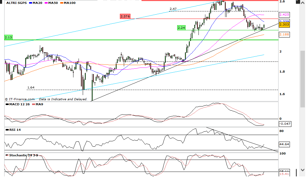 A Altri está em queda há algumas sessões seguidas a esta parte e tudo indica que continuará o movimento de correção.