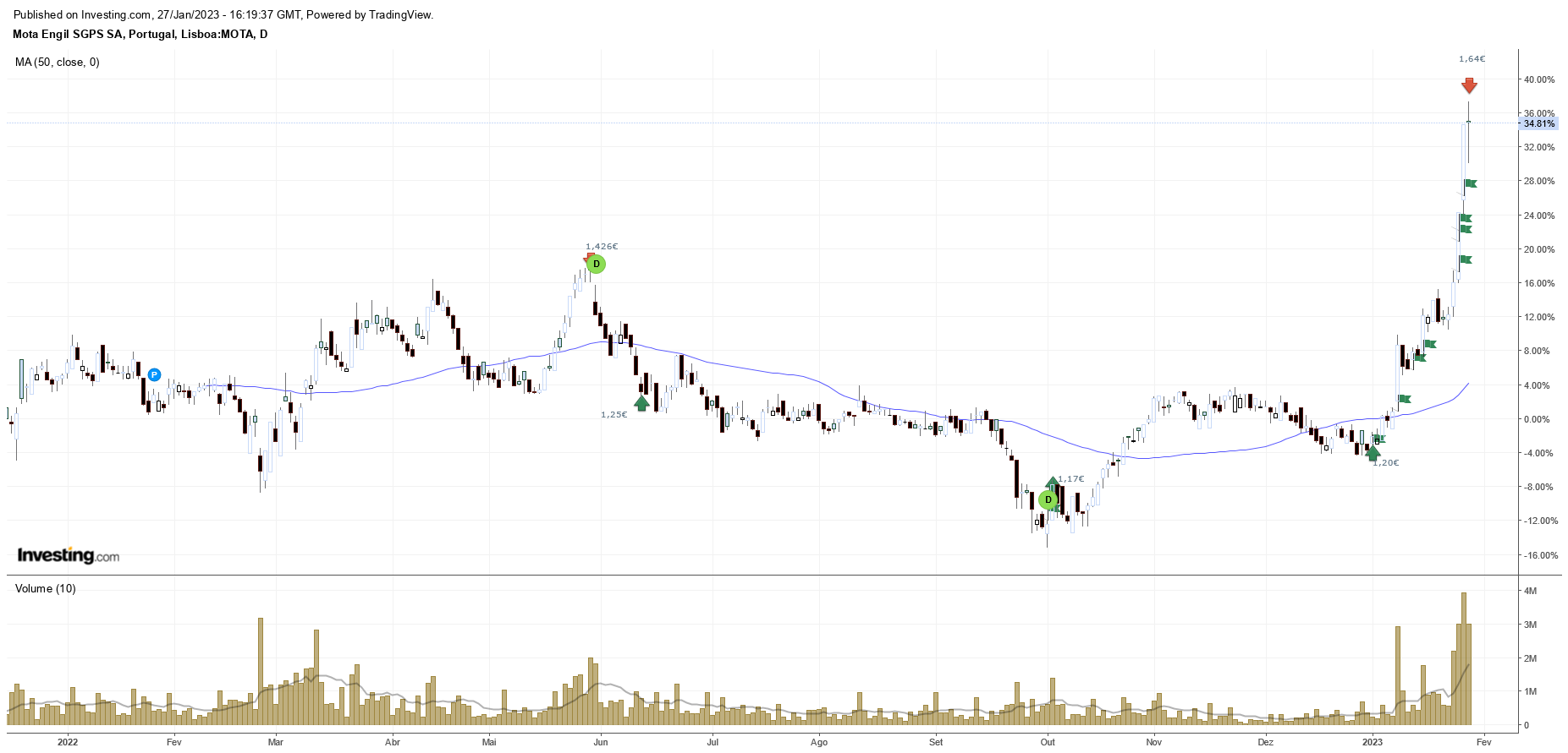 Gun, acontecem os enganos a qualquer um, por acaso até te enganaste no sobrevendida, deverias querer dizer sobrecomprada. Mas sabes bem como é a Mota... demorou foi tempo a arrancar. Mas agora valerá a pena oçhar para ela no curto prazo? Para mim não faz sentido