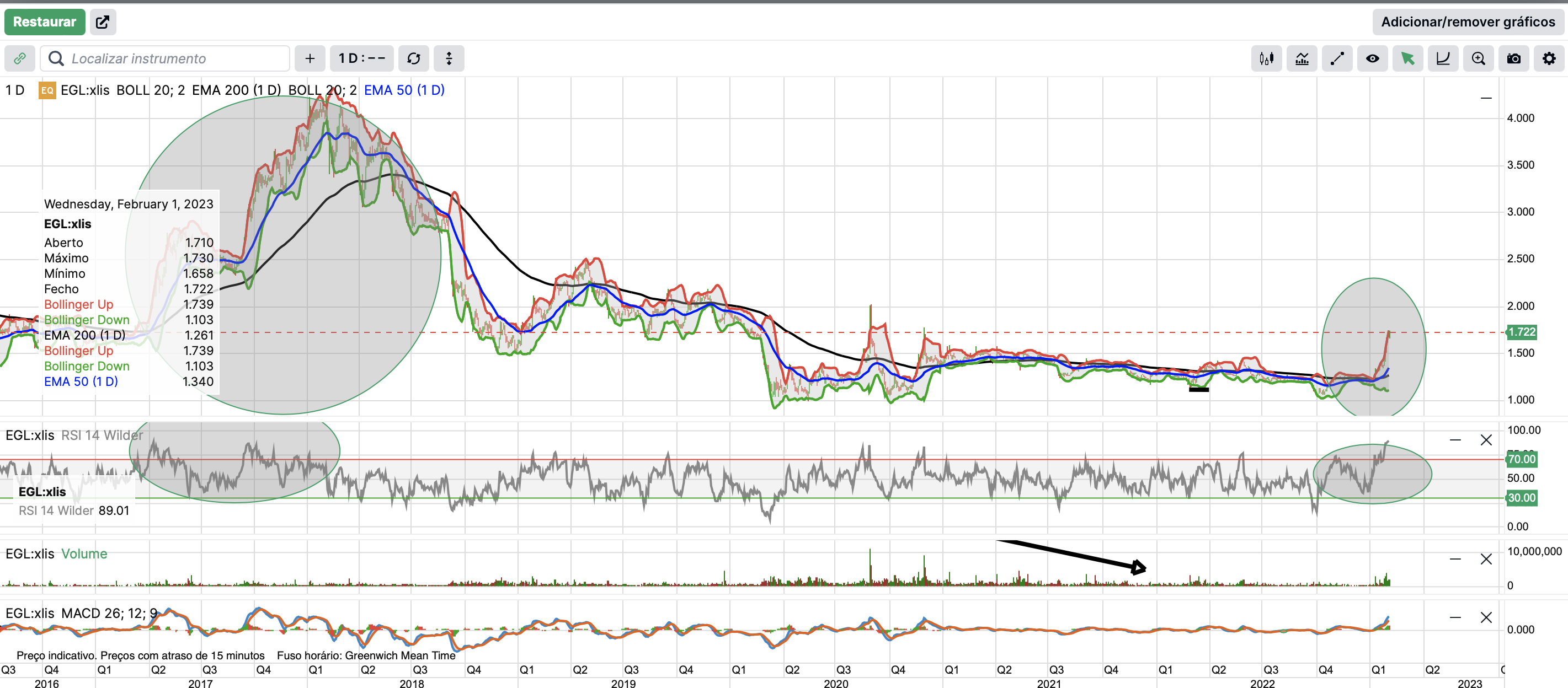 a EMA 500>EMA200, o que confirma a alteração de tendência.