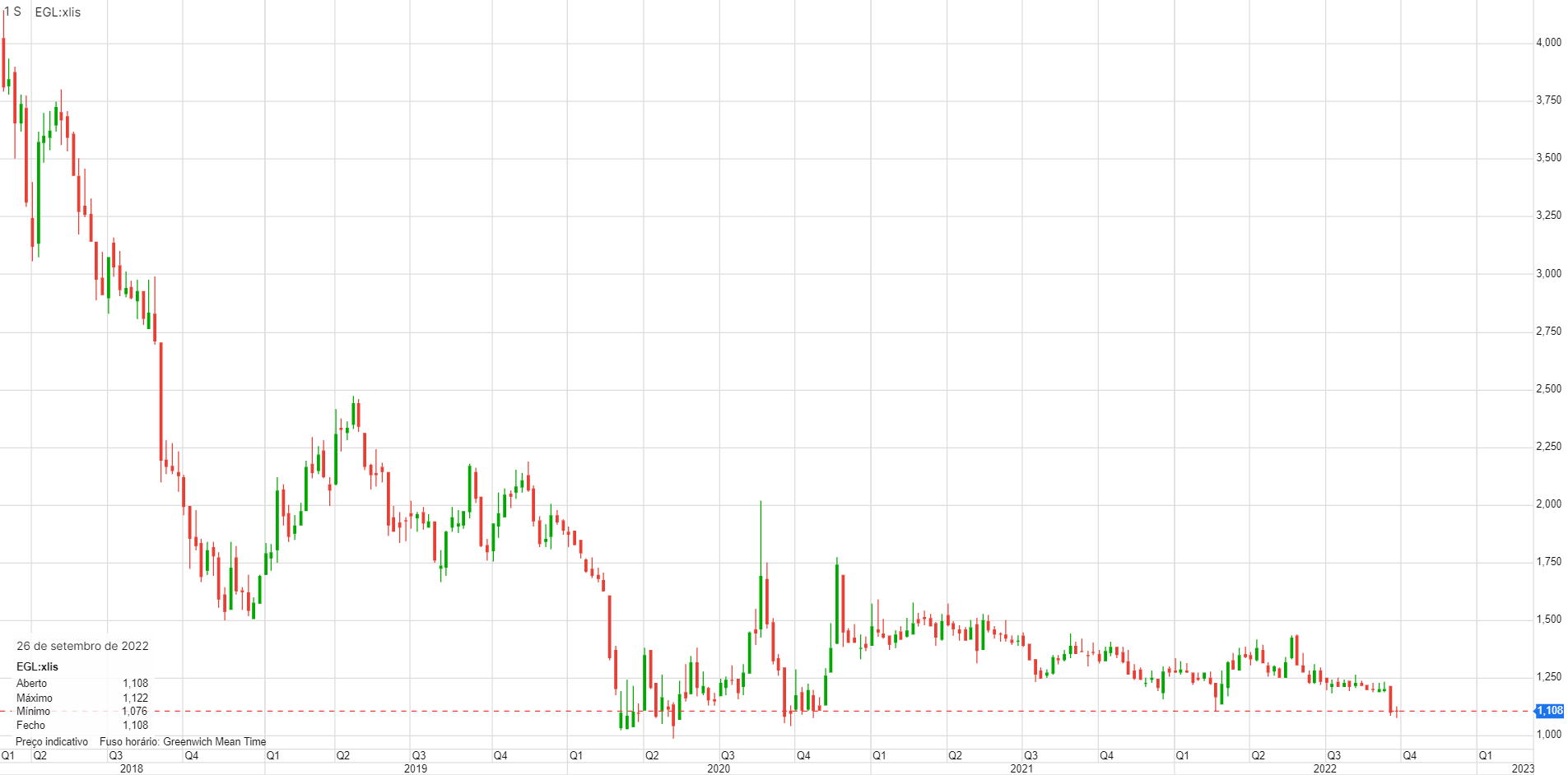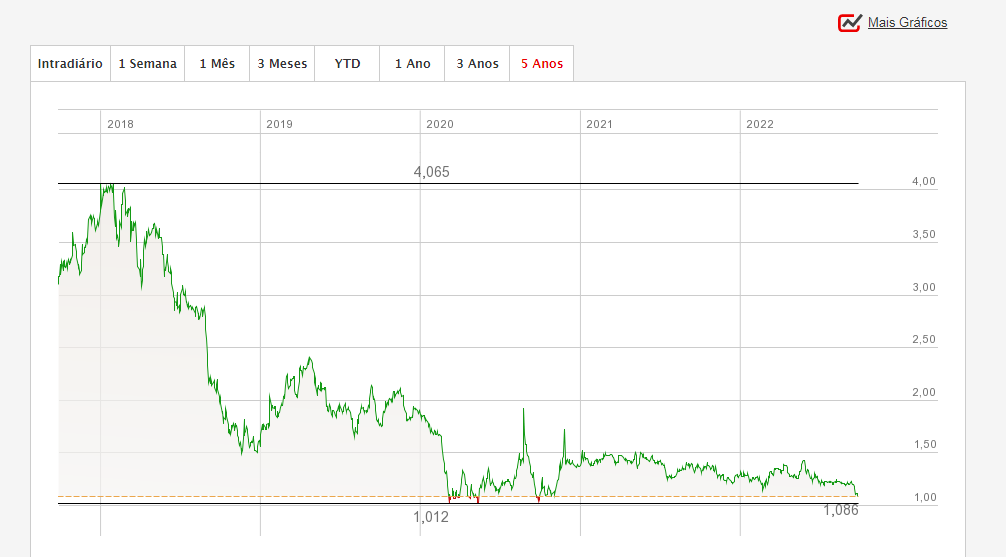 Mais uma ação num ponto perigoso. Estes valores são um forte suporte, uma quebra pode levar a ação para mínimos de muito tempo.