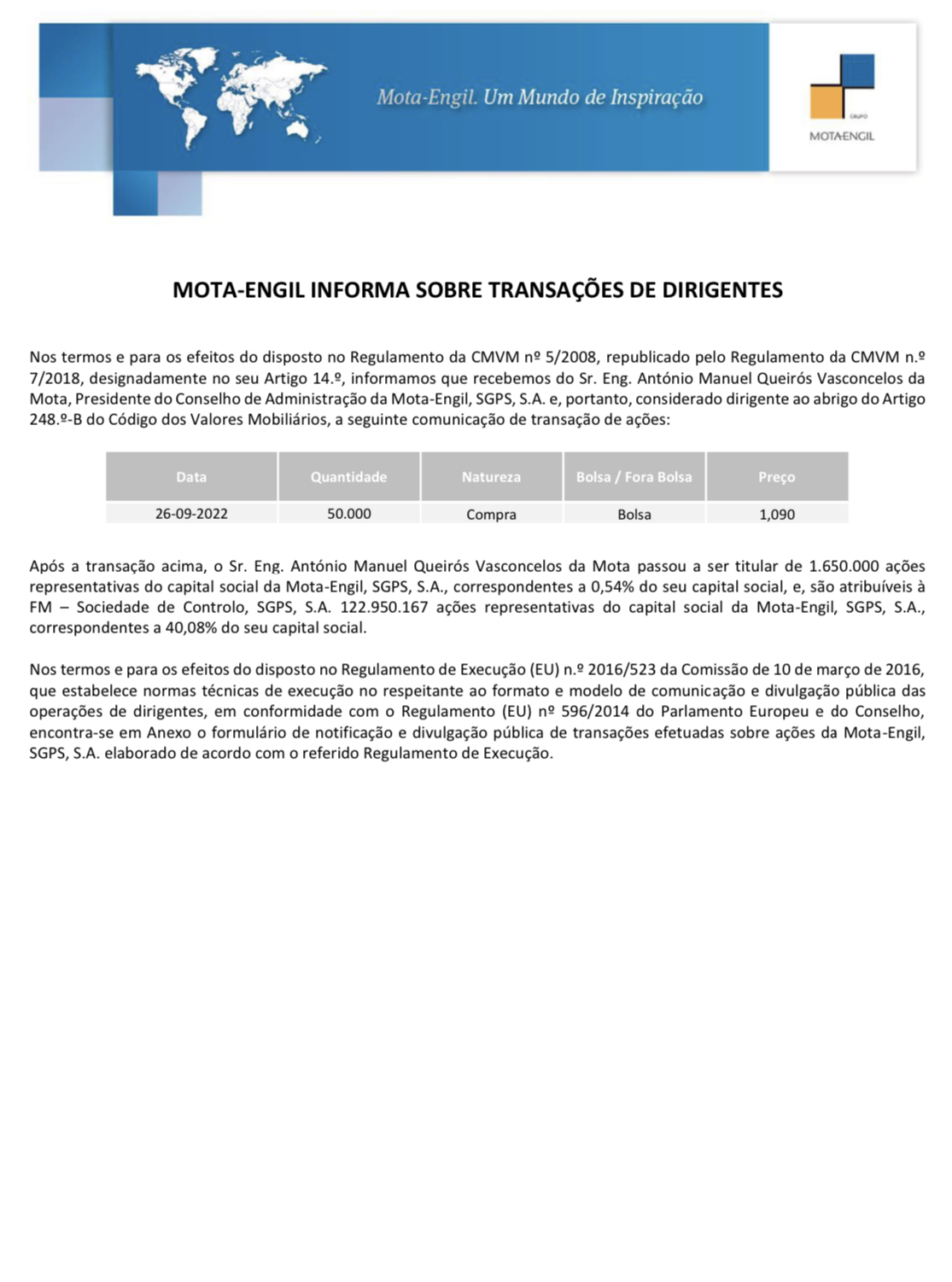 Aparentemente nada tem logica ae clareza na ME: A CCCC comprou a 3 euros e picos, um Diretor geral compra agora a 1.10 e 1,09. Porquê a entrada da maior contrutora Chinesa e uma das maiores do Mundo só tras desgraça à cotação?! Ou nem sequer querem saber disso e apenas focados no negócio, mas porque compra um Diretor Geral?! Confuso, não é?!