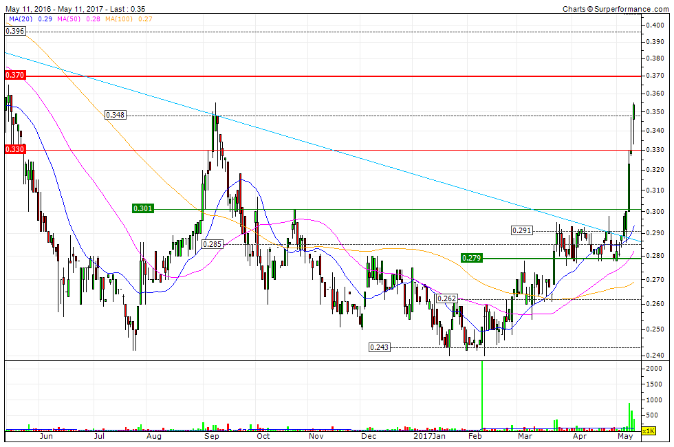 Concordo com a entrada , penso que a acção pode ter pernas para andar , ainda não entrei apenas por estar para já num ponto de resistência forte nos 0.36 onde foi em setembro de 2016 e ai teve um recuo muito forte após subida enorme tal como agora.