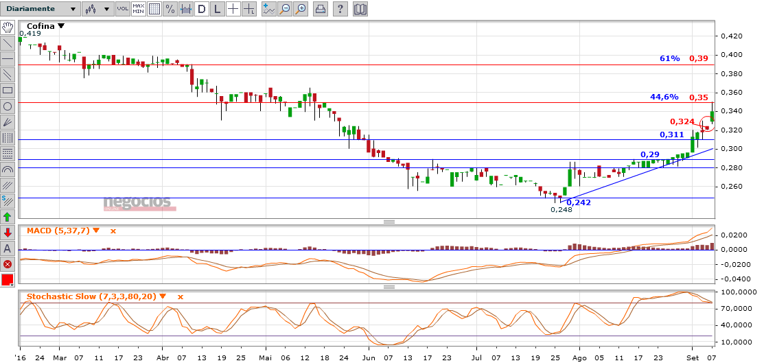 Gráfico semanal da cotação da Cofina: