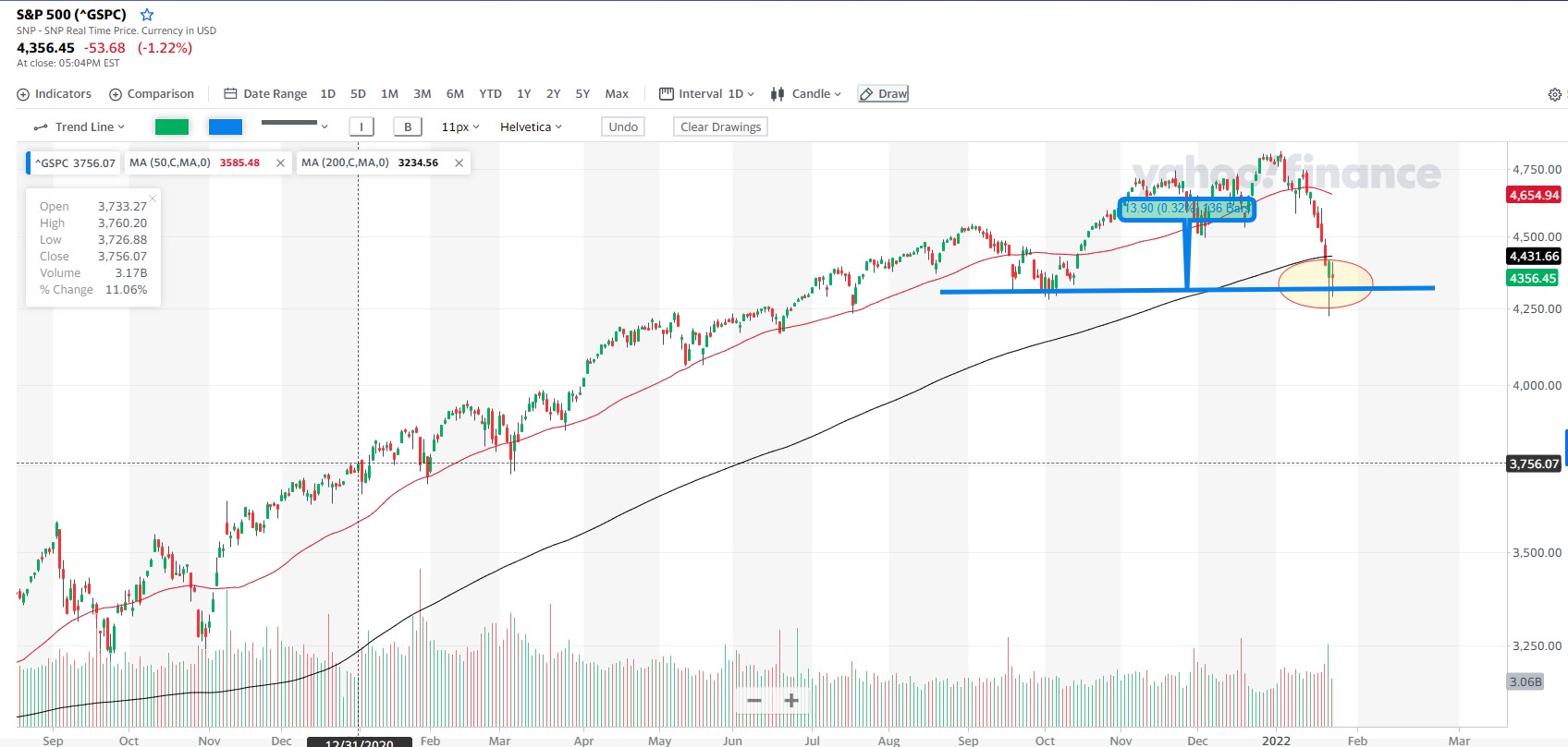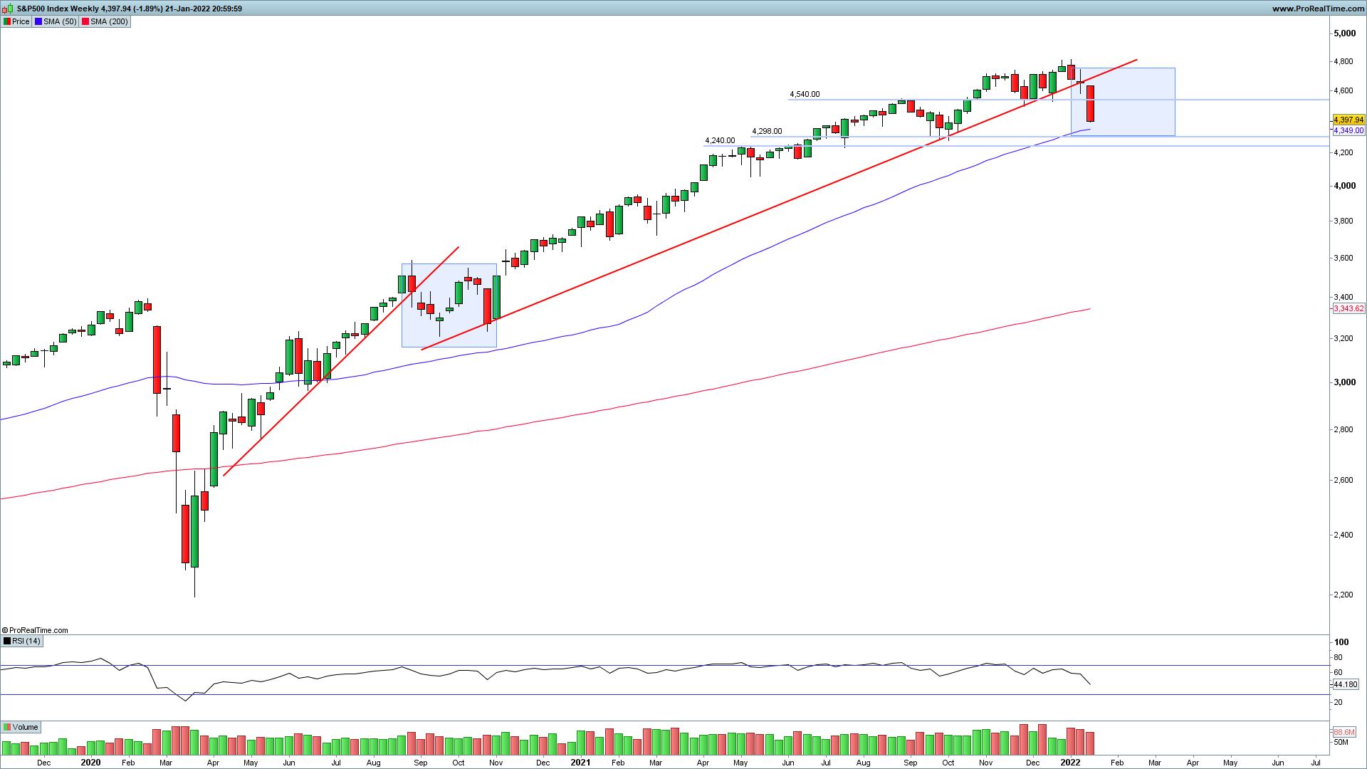 Depende do horizonte temporal que estás a considerar.. Se recuares, tiveste o movimento de Março 2020 que foi interrompido, teve um momento de consolidação e arrancou para outro movimento ascendente. Se te referes à LTA com início em Novembro 2020, sim, a menos que para a semana ultrapasse os 4550~ com uma grande vela - acho improvável mas nunca se sabe! - esse movimento está invalidado.