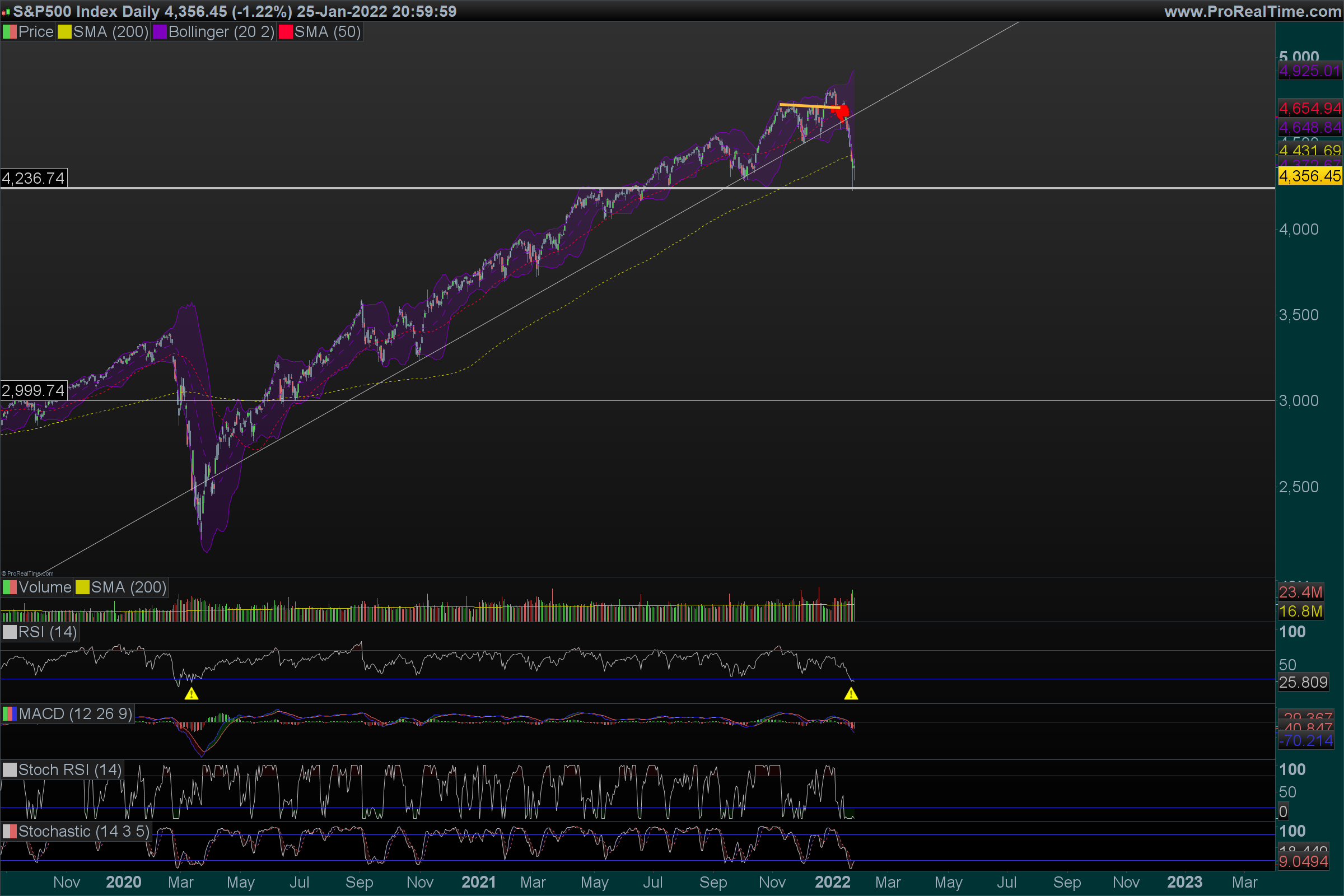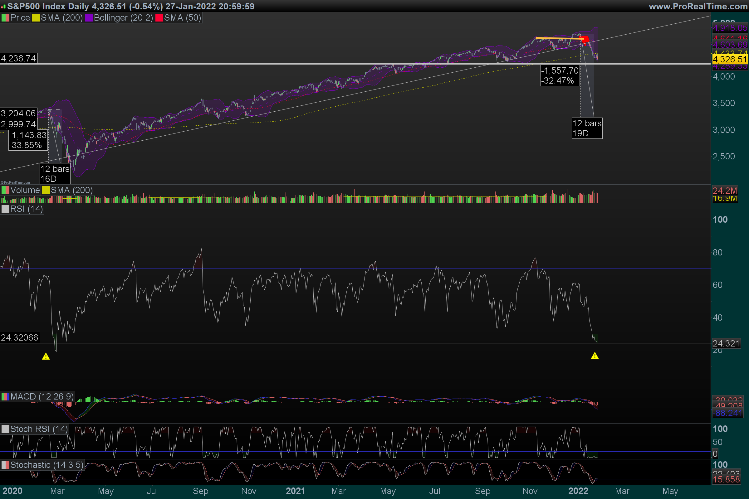 Se quebrar os 4300/4250, é péssimo sinal e significa que esta quebra da LTA se pode converter num movimento descendente mais complexo, onde a força vendedora está a vencer a compradora, podemos começar a falar de um início de bear market (talvez!).
