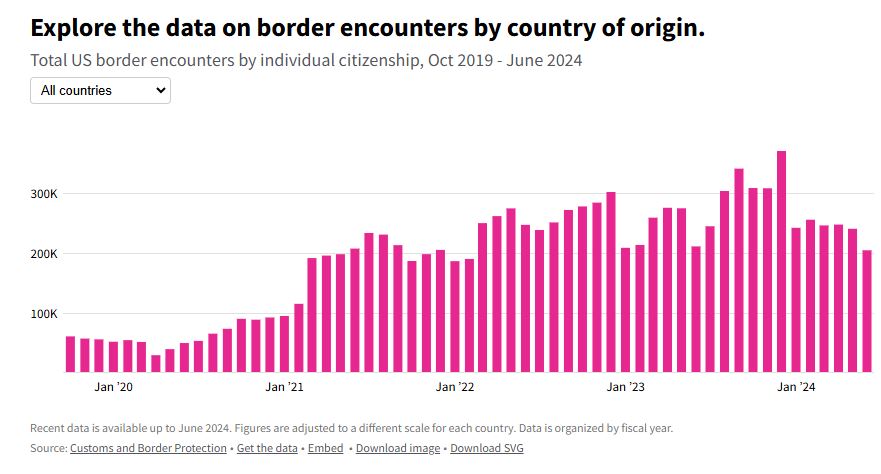 Sim durante o reino do déspota Biden que destrói direitos dos americanos para qualquer pé descalço tiveram border encouters em média de 200.000 a 300.000 por més. Claro que haverá uma taxa de ilegais considerável que simplesmente entra sem ser apreendido.
