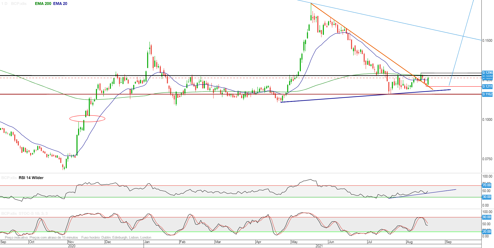 Para já fechos acima dos 0,129€ máximos de final de Julho e da semana passada, acredito que possa ir acima de 0,14€.