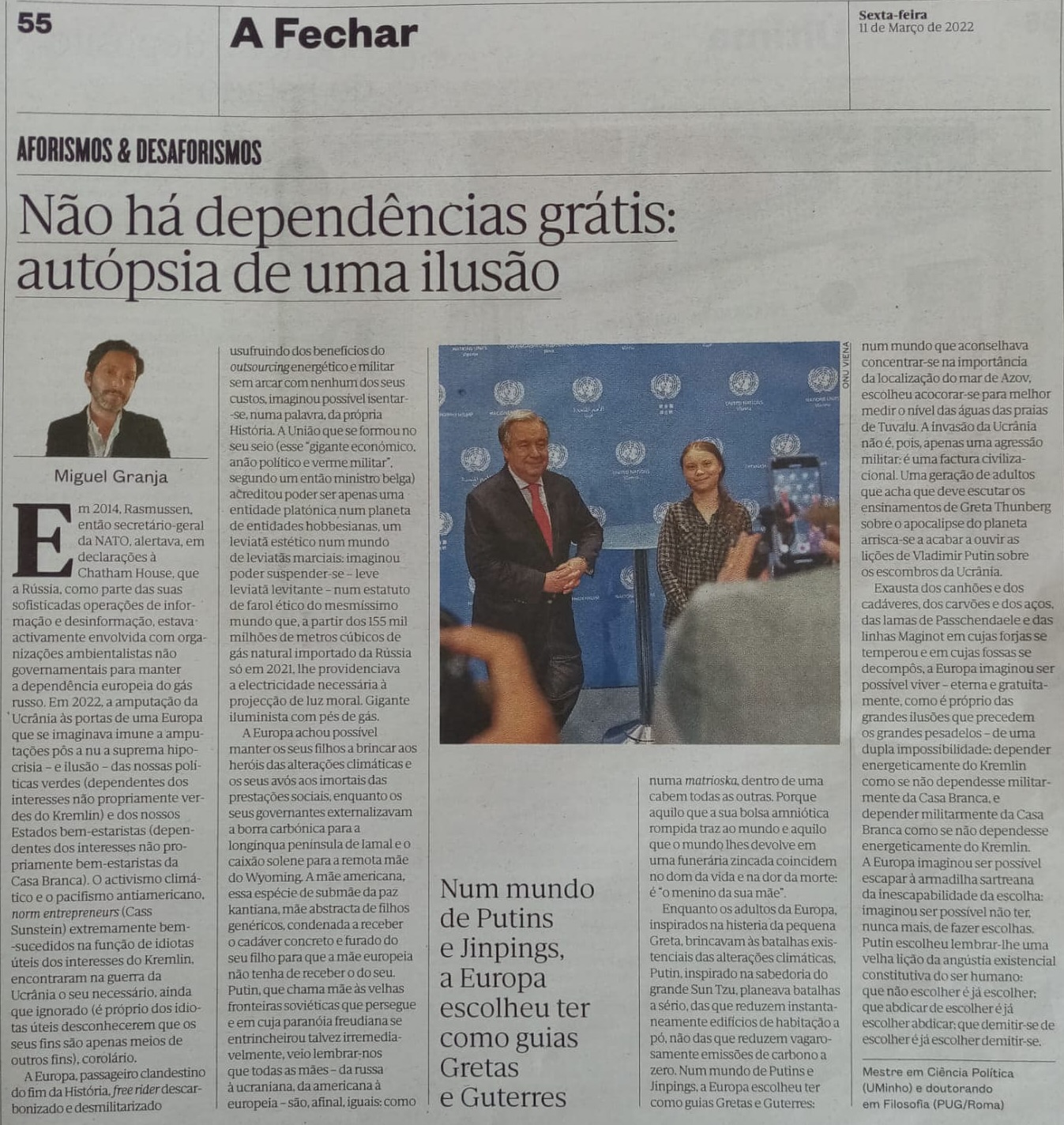 Diretamente não tem a ver com "Políticas para Portugal", mas como estamos na Europa e o artigo visa um português (o tal do pântano)