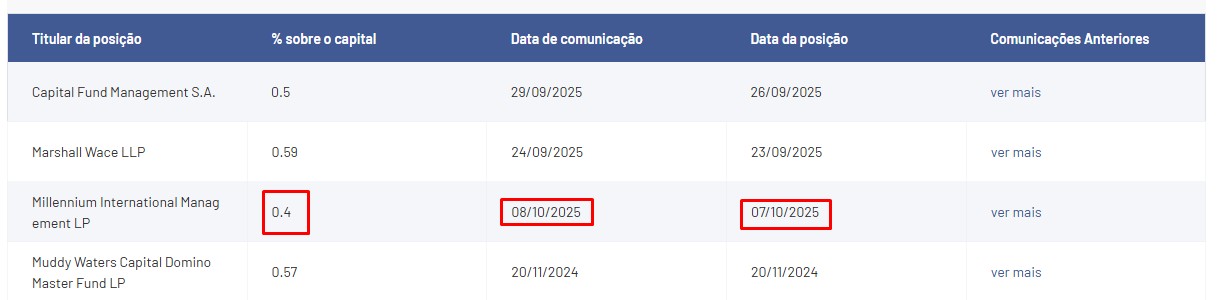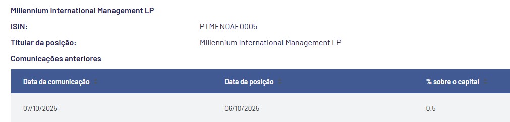 O short da "Millennium International Management LP" deixará portanto de estar listado como interesse a descoberto relevante no site da CMVM, ficando apenas os 3 estarolas que lá estavam antes.