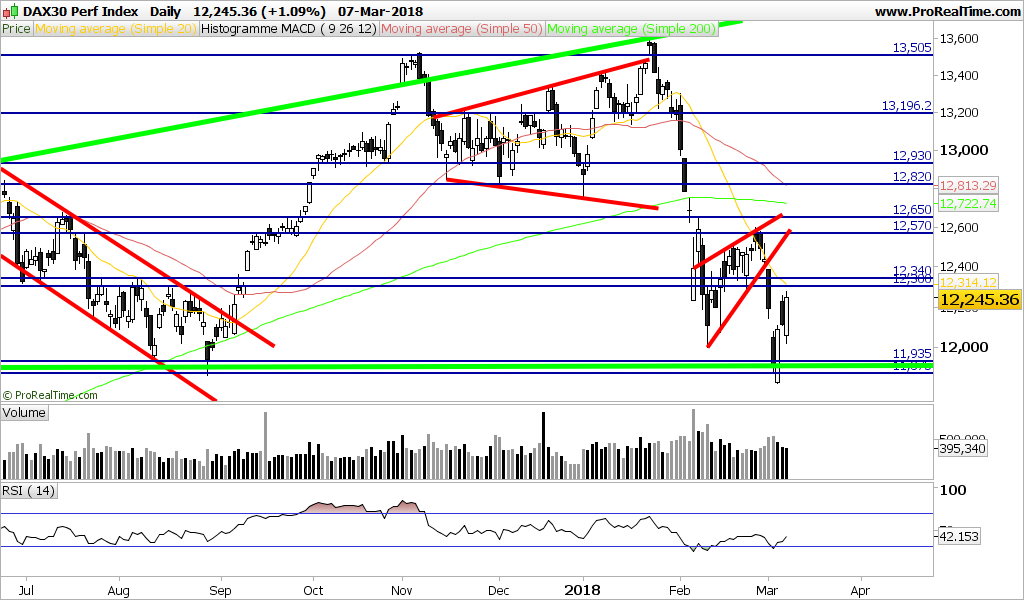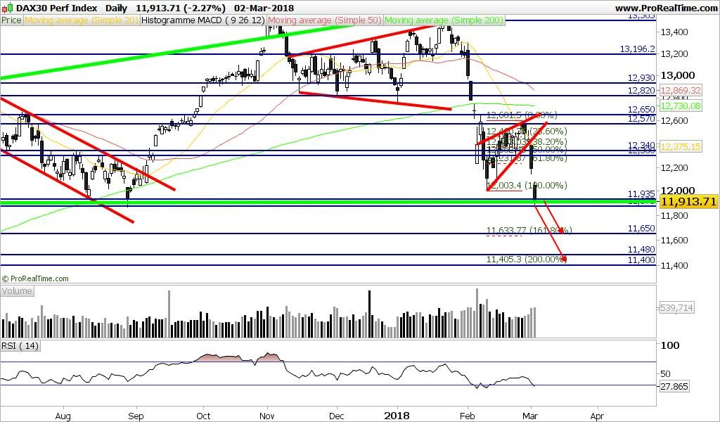 Inicio de semana atribulada e pouco habitual com futuros DAX em forte queda nos 11750 Pontos e abaixo do forte suporte 11900 e DOW a cair 200 Pontos