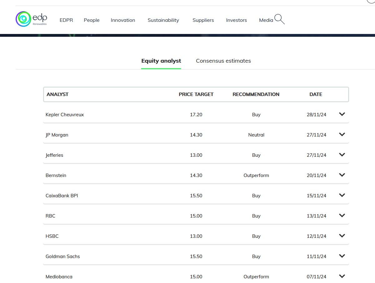 Numa nota o banco alemão aumentou o preço-alvo das duas empresas do grupo EDP. Já a Alantra cortou em um cêntimo o "target" da EDP Renováveis.