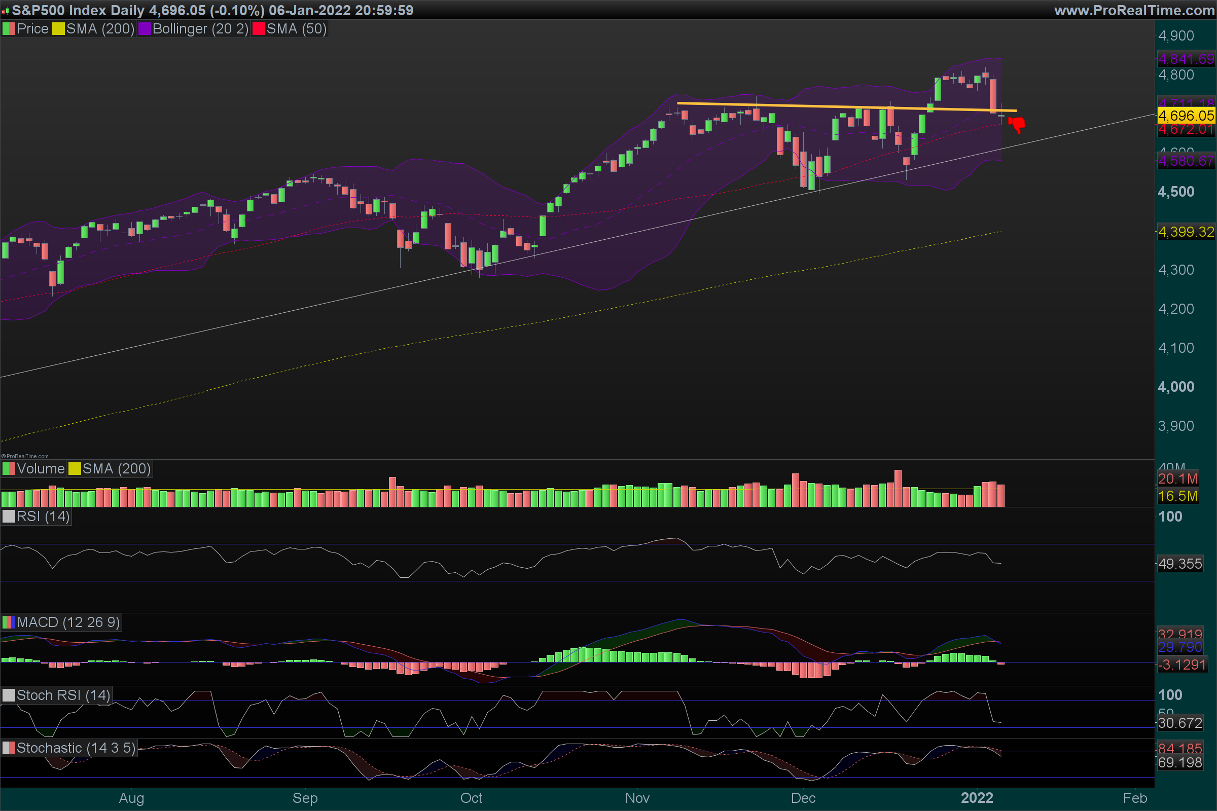 Tanto no SP500 como no N100 com o bull market é sempre arriscado falar em quedas mas é um sinal que pode atirar o indice para o dominio dos ursos por alguns dias.