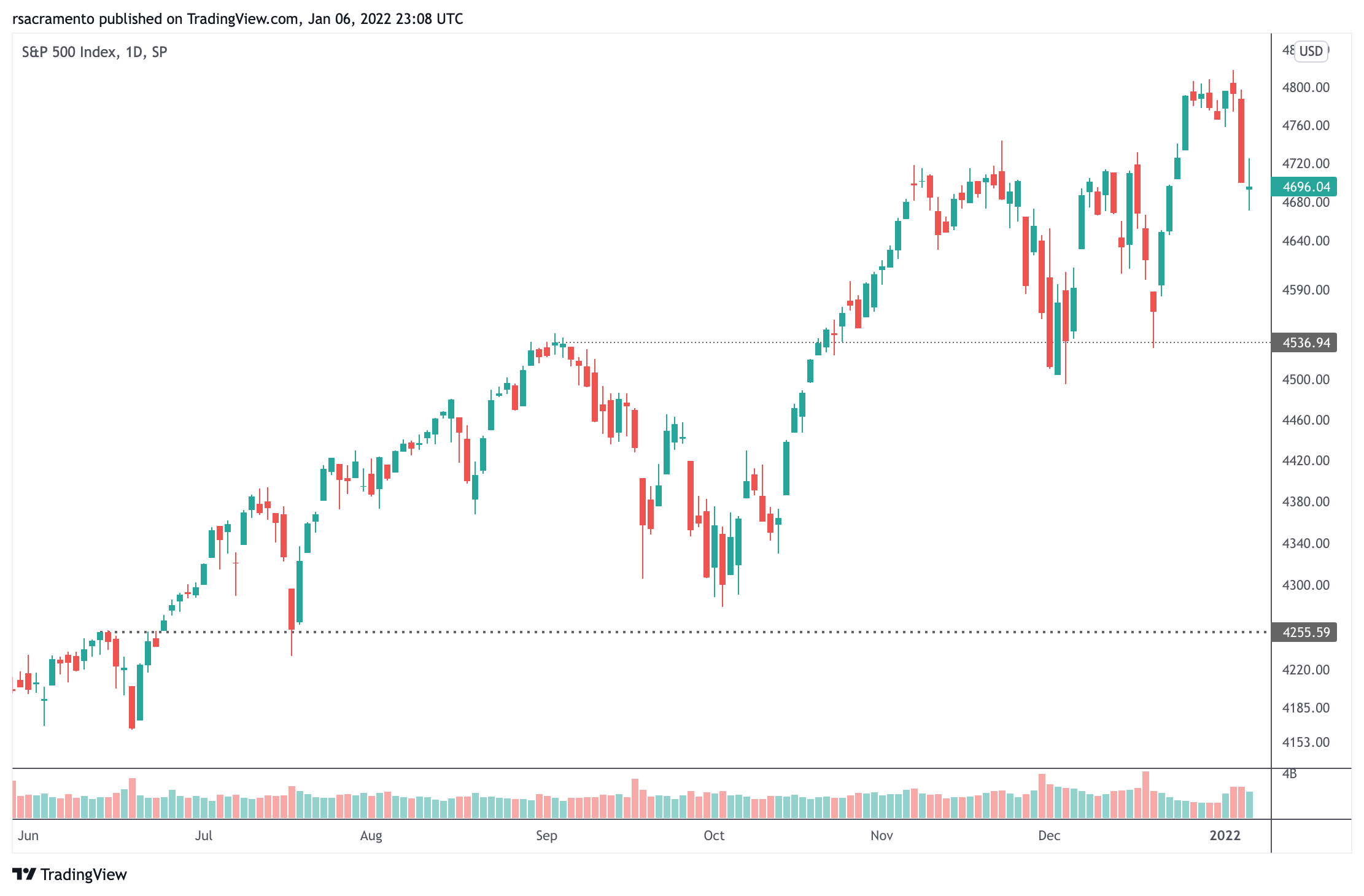 deixo abaixo aos interessado um gráfico com o outlook para o s&p 500 para o ano de 2022 do banco de investimento oppenheimer & co. inc.