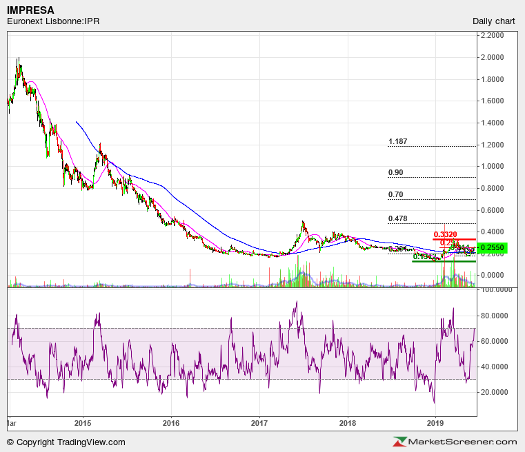 Estamos precisamente junto a uma resistência. Se os mercados americanos forem mesmo para cima a Impresa não ficará encolhida e poderá fazer uma coisa com piada.