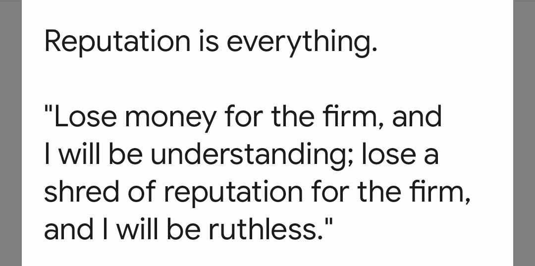 E a reputação é tudo (Warren Buffett).