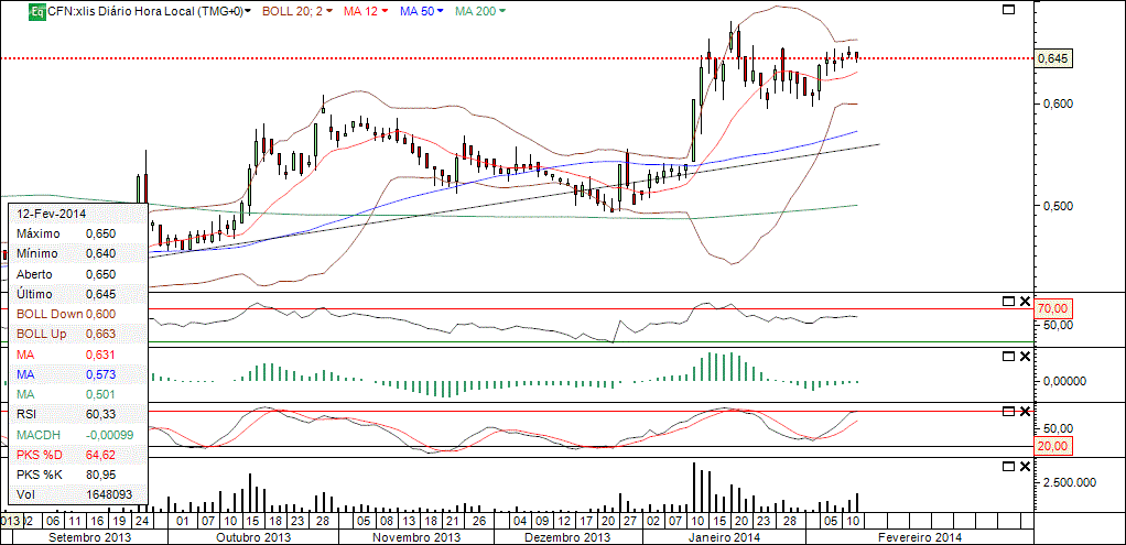 Neste momento, parece-me que a LTD do gráfico é válida, e embora os 0,59€ (e qualquer coisa) estejam a segurar a acção, parece-me que os 0,58€ são o suporte mais válido que a acção tem. Neste momento, e mesmo depois do dia de hoje a formar uma vela de alguma indefinição e com um toque na LTD de curto prazo, parece-me que a vinda aos 0,58€ ainda não está fora de hipótese. Se amanhã e nos próximos dias a acção decidir rumar a norte com convicção, então talvez seja altura de mudar a referência de suporte e apanhar o "comboio" mais acima.