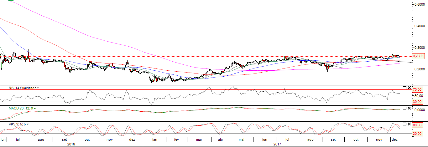 Quanto aos 0,26€ não lhes daria grande importância. Para chegarmos aos 0,39€ daqui a um ano (best case scenario) vamos passar por eles mais cedo ou mais tarde. O que interessa é que os fundamentais do BCP continuem a melhorar e assim suportem cotações mais altas. Não há pressa."