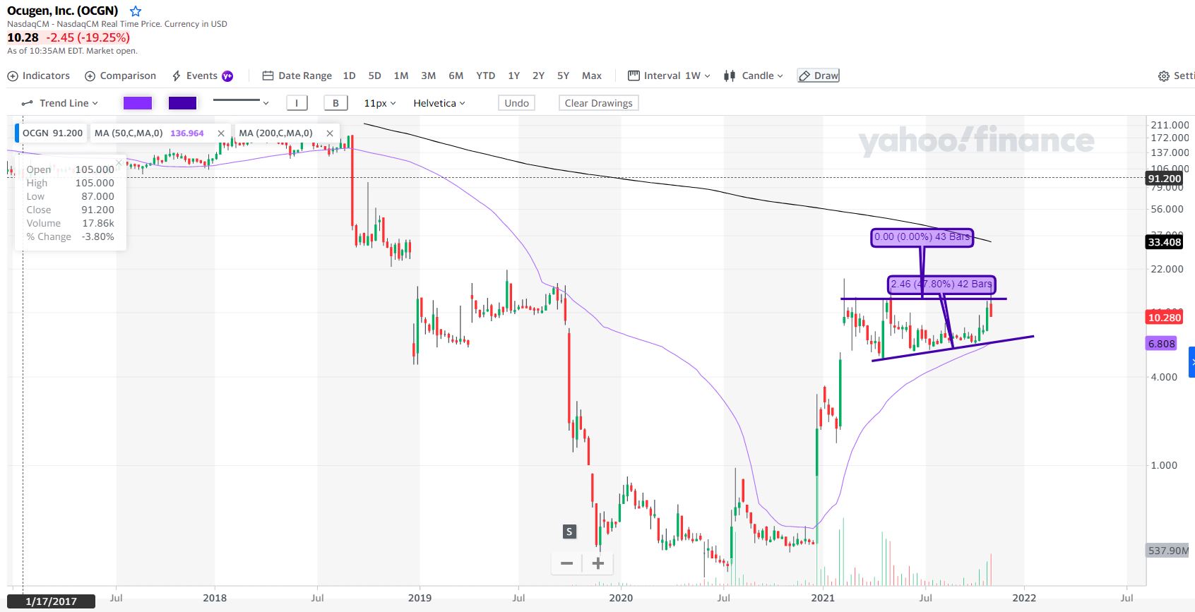 Andava perto dos 6usd quando saiu a notícia que os testes/pesquisa não era validados porque a Otonomy não respeitou uns parâmetros e foram considerados nulos pela entidade americana que aprova os ensaios. Assim voltaram a estaca zero, voltaram a reiniciar os trabalhos e se dia 8NOV forem positivos acho que as ações podem voltar de onde caíram e fechar esse gap que falas, era ouro sobre azul....mas não passa de uma possibilidade....possível....