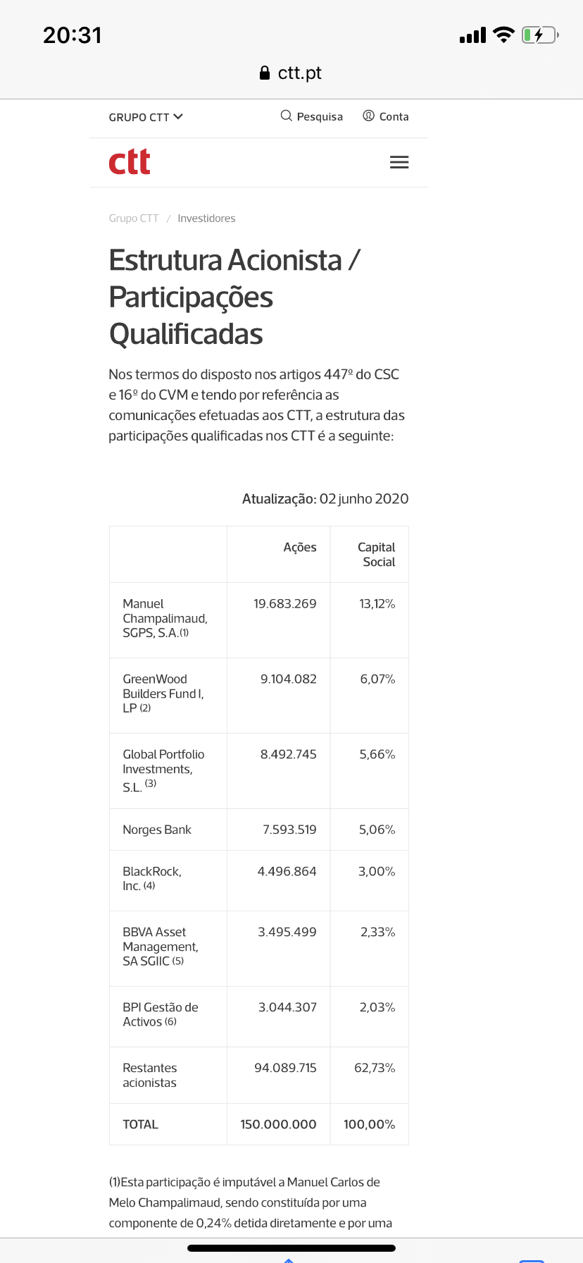 quem comprou esses 60k é só o segundo investidor mais importante dos ctt...