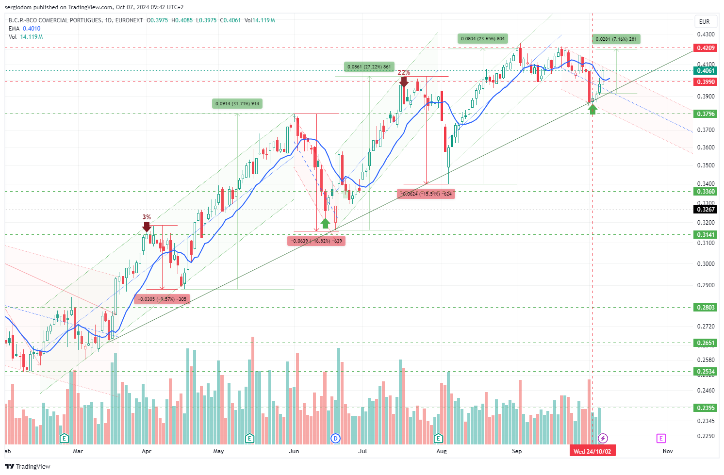 em teoria, uma boa altura para fazer um entrada. apostar no ressalto na linha de suporte é arriscado, mas o BCP tende a a ser fiavel nesse aspecto.
