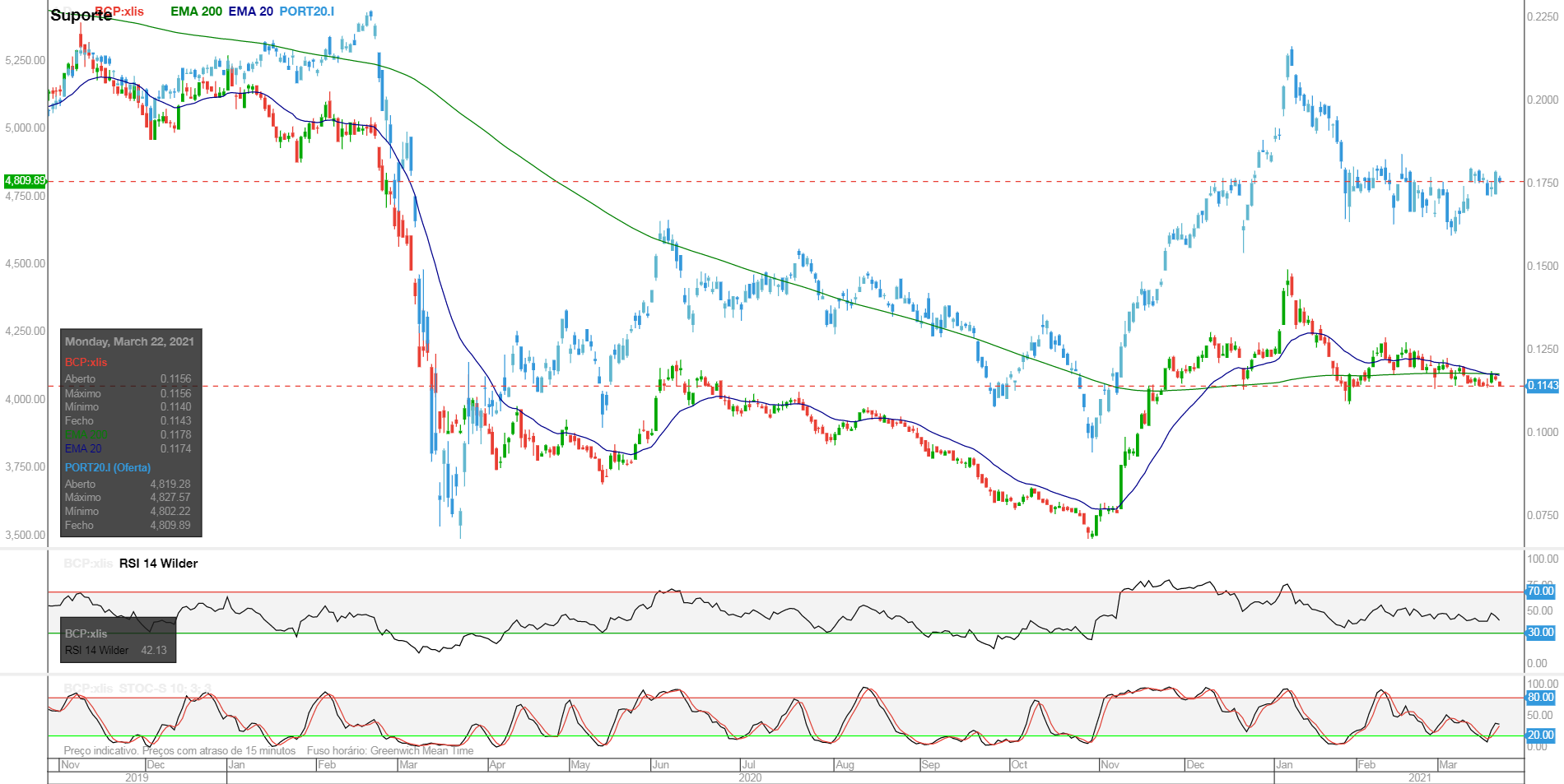 Continuo a não ver nada de animador no BCP. Como já referi antes, tenho uma posição curta, mas neste momento está "em casa". Nos últimos tempos tem estado relativamente quieto.