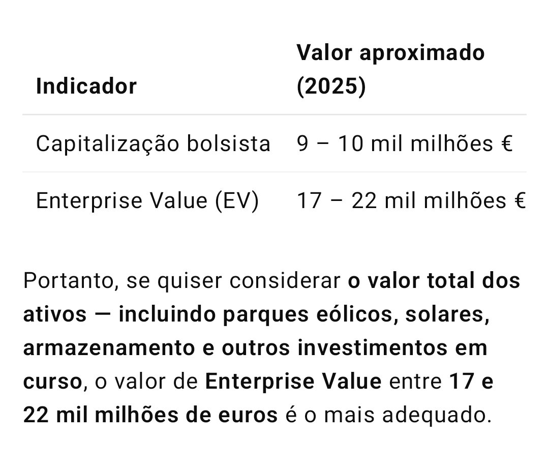 A respeito da alta alavancagem da EDPR, há uma coisa a respeito que não vi nem li em parte alguma: a EDPR tem ativos valiosos e facilmente vendáveis. Repito: facilmente vendáveis.