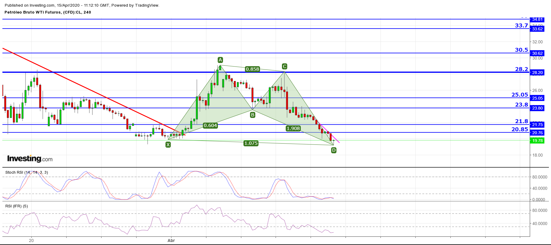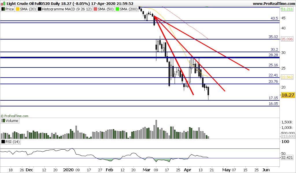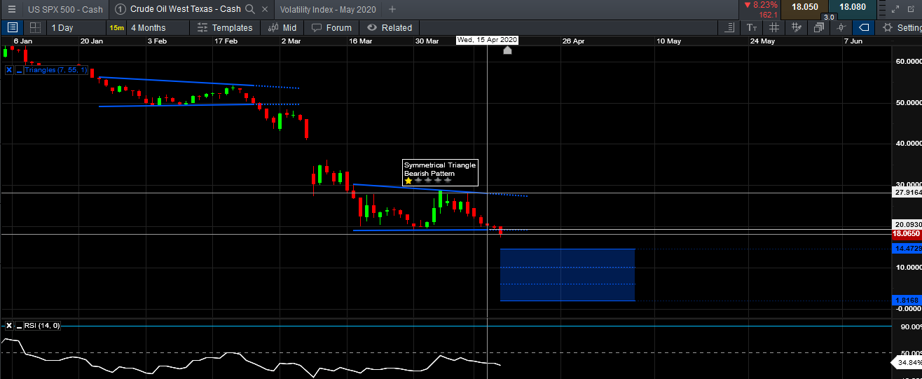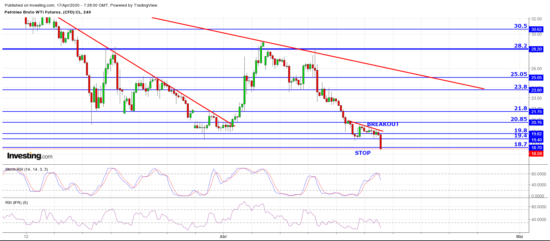 Em termos fundamentais o petróleo está com o pior combustível possível para touros. Oferta > Procura, que se verifica mesmo com o corte de produção, que só tem efeitos em maio, sendo que os stocks à data de hoje já estão no limite e com custos marginais a disparar. O preço de um bem nestas condições tende para zero.