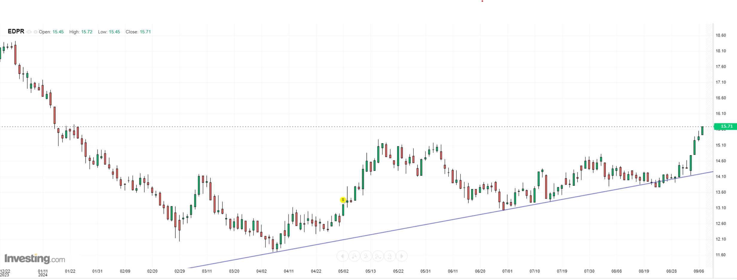 No meu ponto de vista está a corresponder às expectativas quase na perfeição. Contava com uma resistência próxima dos 16,50 (fez 16,30) e agora conto com uma correção pelo menos até aos 14,80 mas poderá vir mais abaixo até à lta. Em nenhum dos casos compromete o que espero dela até ao fim do ano, fechar positiva. Esta correção pode ser uma boa oportunidade para entrar/reforçar. Fechei a minha posição nos 16,12 e estou à espera do sinal de reentrada.