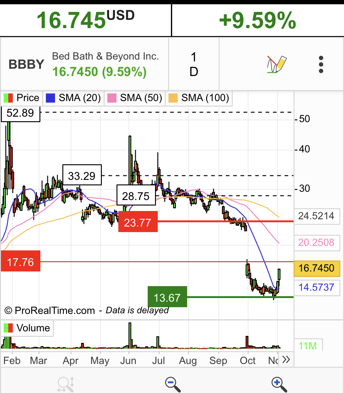 Ninguém adivinha estes movimentos/notícias, ou melhor dizendo, que o mercado irá reagir assim a uma notícia destas, sobretudo quando o problema da BBBY é que o negócio falha os objetivos traçados.......e por isso estava onde estava. Pagar a dívida mais cedo é uma notícia positiva, mas daí a subir 80%.........bem, o short interest também ajuda.vamos ver se aguenta até à abertura do mercado amanhã. pois desconfio que o balão esvazia, naturalmente.........