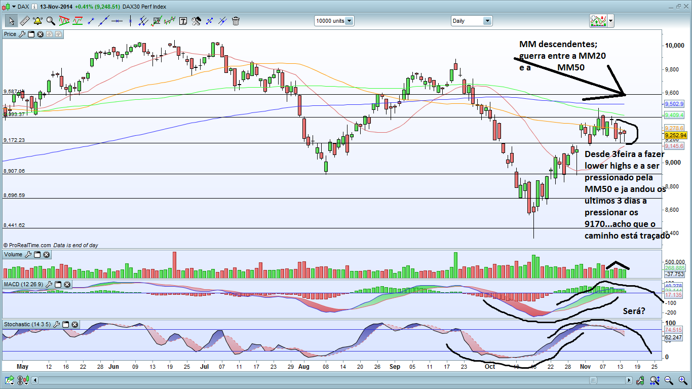 O DAX mantem-se a fazer lower lows e lower highs pois não acredito que hoje vá muito mais alto dado a recessão no Japão e os futuros spx.