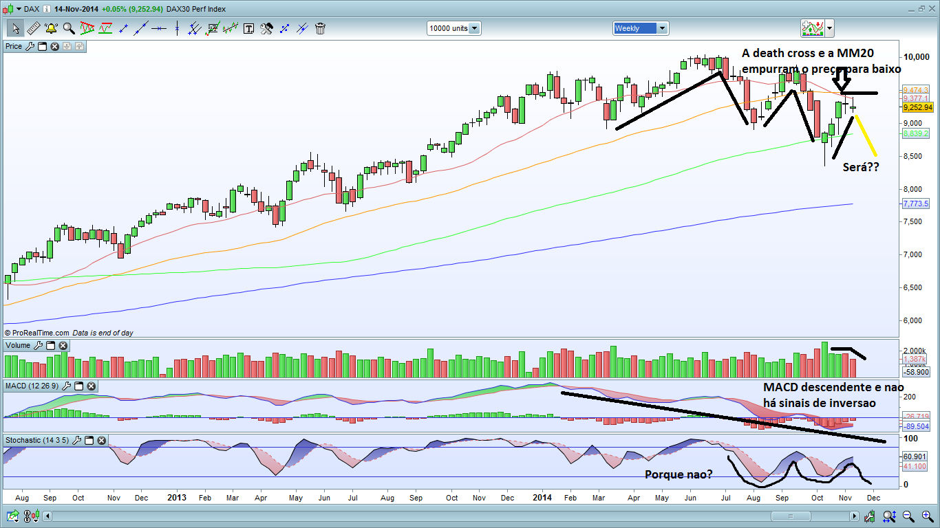 Isto revela bem a fraqueza do DAX e leva-me a crer que quando os índices americanos começarem a esquiar a serra inclinada que treparam desde 16 de Outubro o DAX, entretanto infetado pela bactéria da legionella, poderá ir para os cuidados intensivos. Vamos ver se o doutor Draghi lhe vai valer porque a enfermeira Angela enganou-se no antibiótico que aplicou, o austeritate. O antibiótico correcto era o levofloxacino ou a azitromicina. E agora vamos ver se tem cura!