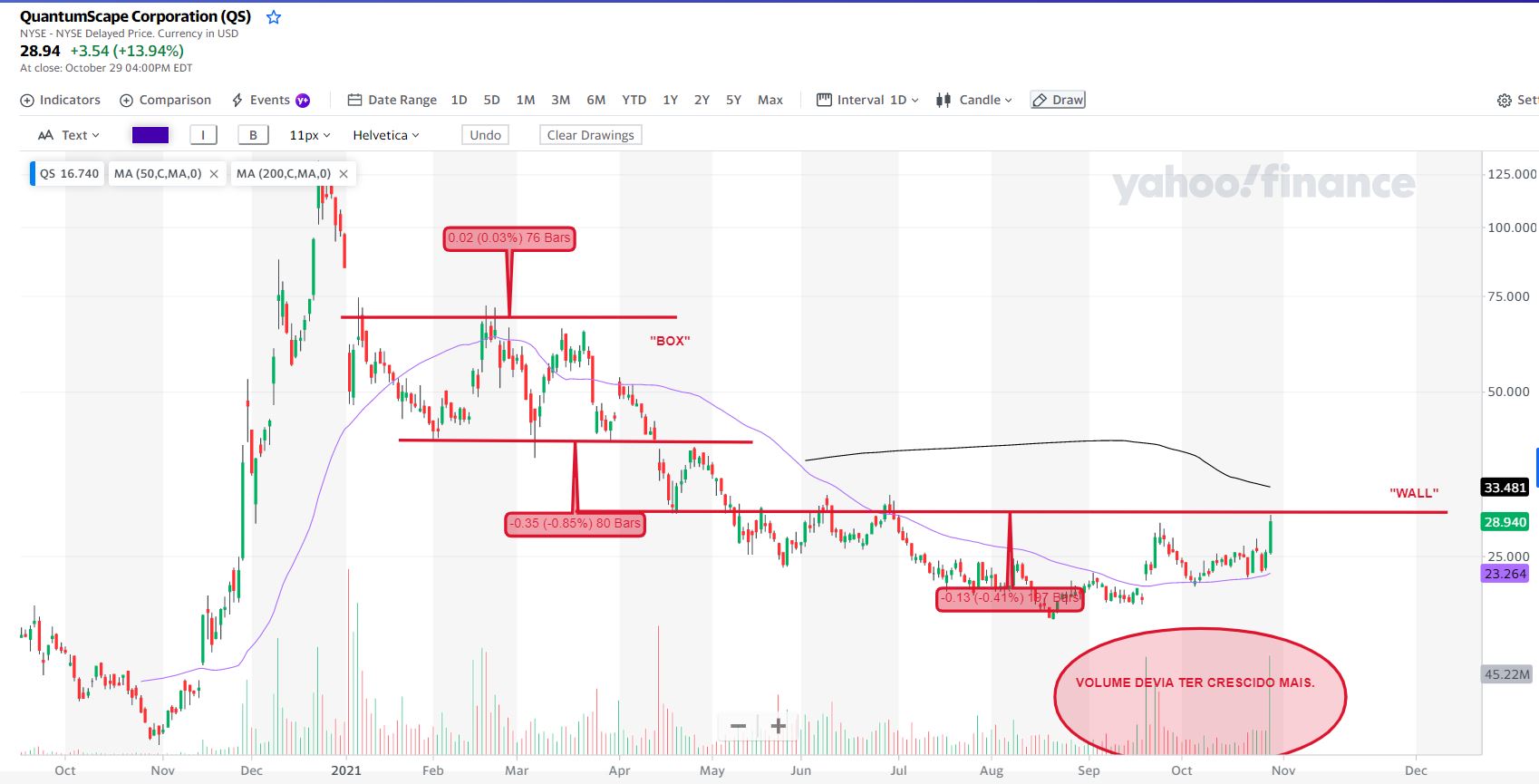 QS tem um gráfico interessante mas parece faltar algo, possivelmente mais volume para catalisar o movimento que se pretende.