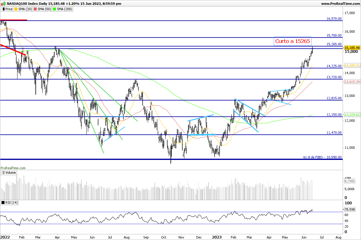 O DAX e o Nasdaq, parecem claramente bullish.