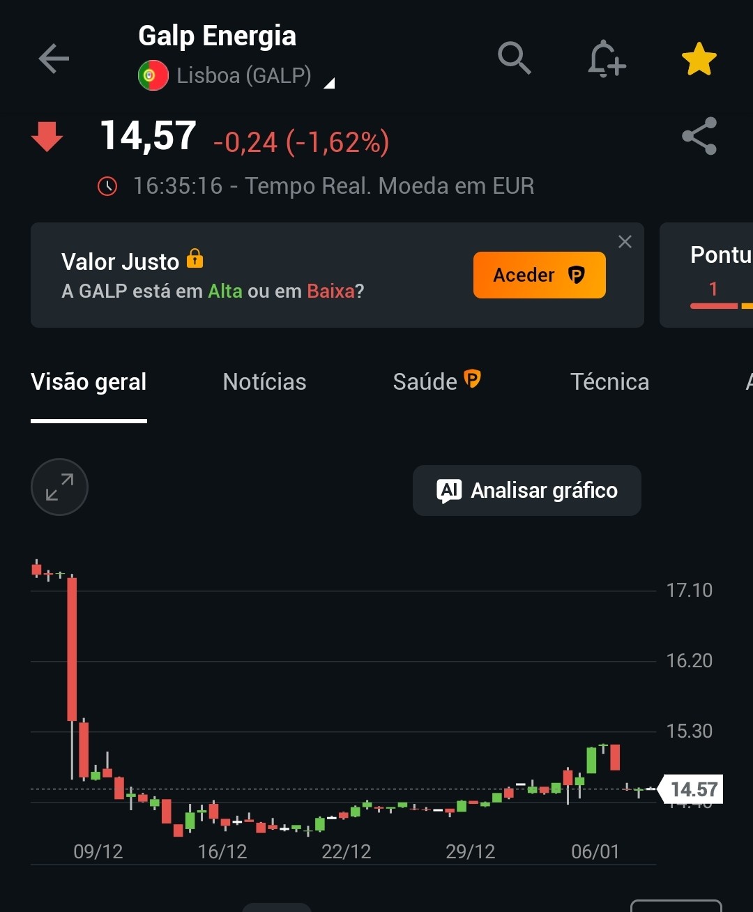 O gráfico que mostras diz apenas que o mercado está nervoso no curto prazo — não diz que o valor da Galp está a cair. São coisas diferentes.