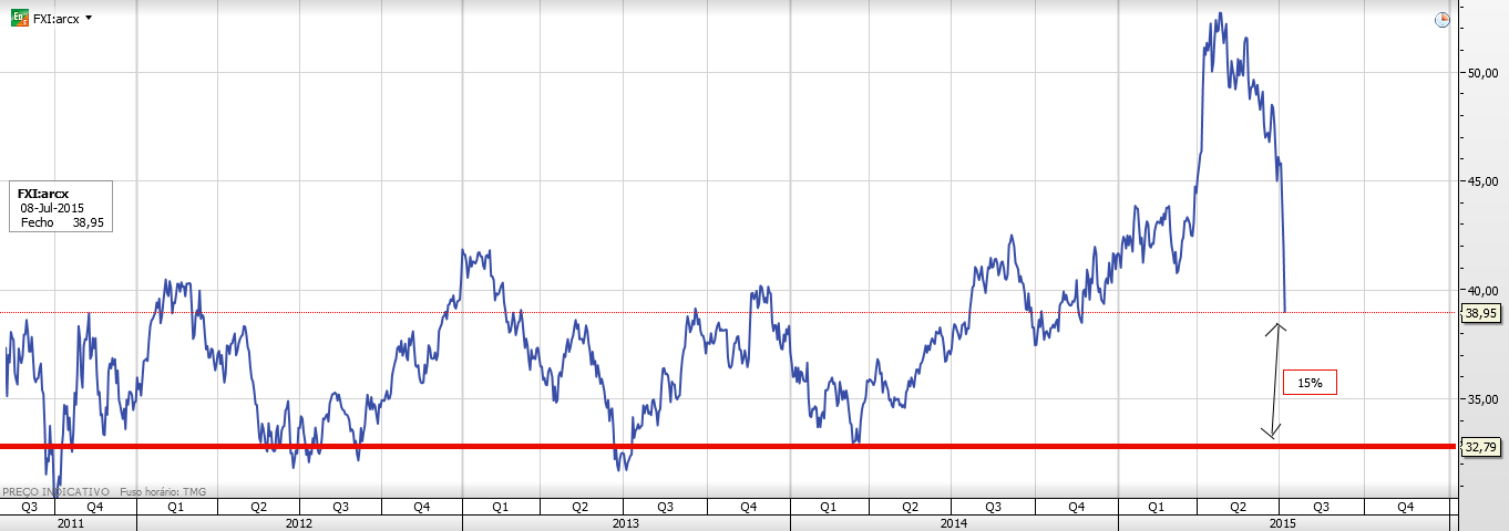 Não sei ao que o "fonds" se refere (provavelmente cotação noutro mercado que está fechado/fechou mais cedo) mas o fecho do FXI hoje foi nos 38.95!!