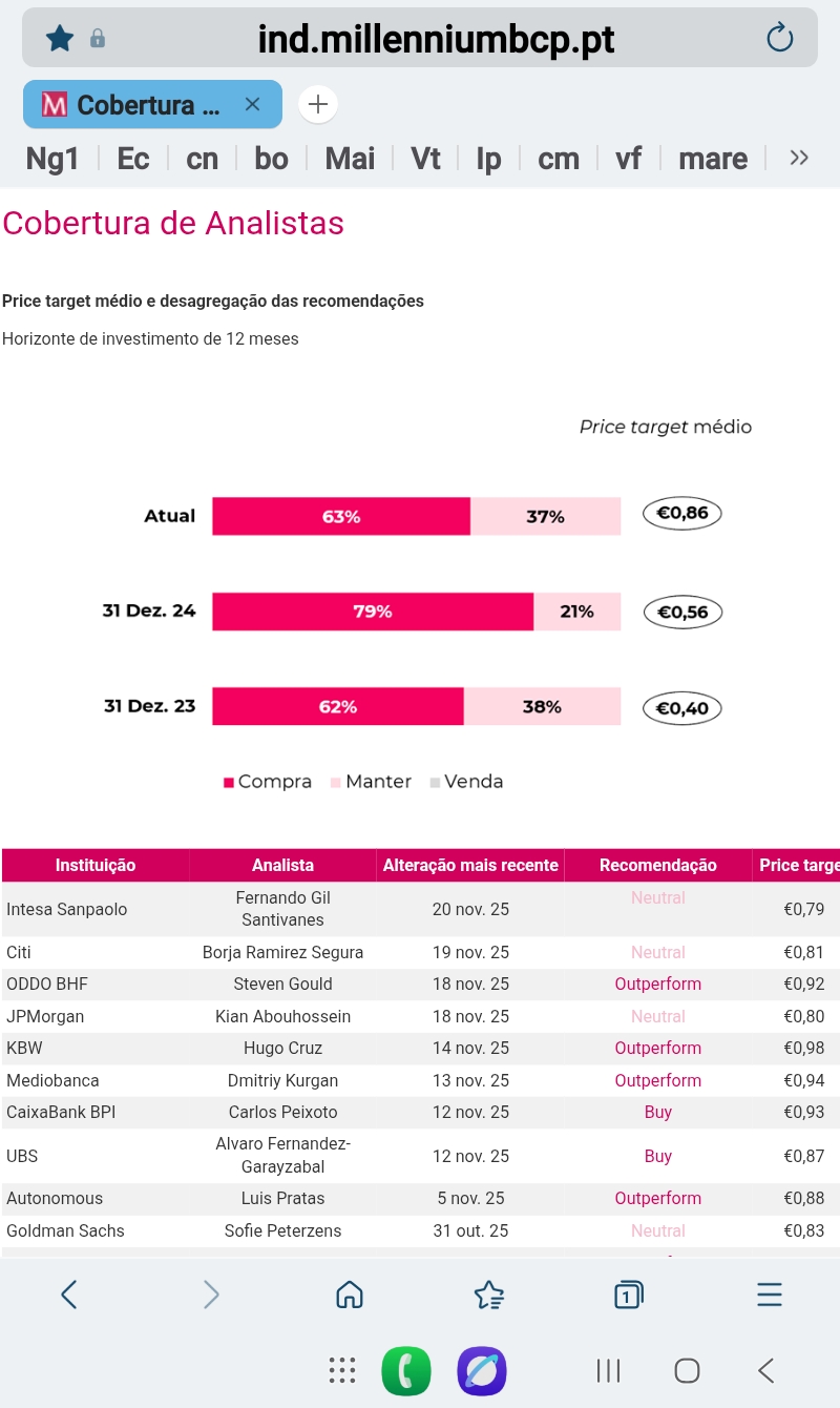 Nota : É incrivel como o BCP mantém uma CAP quase identica À EDPr..... depois torna-se dificil não falar das MANOBRAS ! Aqui faz-se movimento a todo o minuto, não se espera por aberturas e fechos para passagens ! Mas é o que temos ! O BCP Já teve menos Peso!