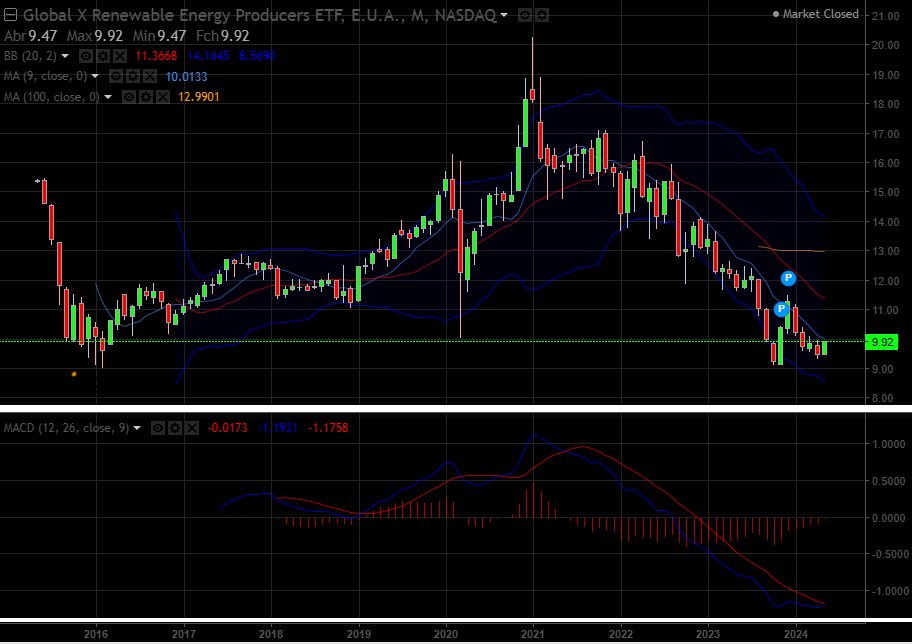 Mensal do ETF das renováveis no nasdaq