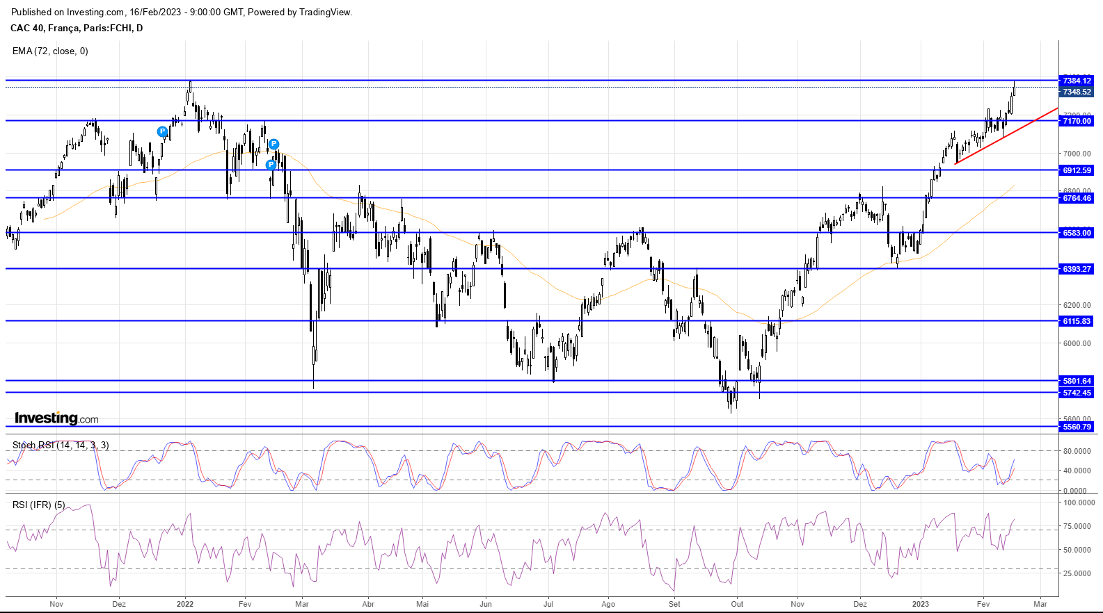 Já várias vezez tinha falado no CAC como um índice destemido. Bull mesmo.