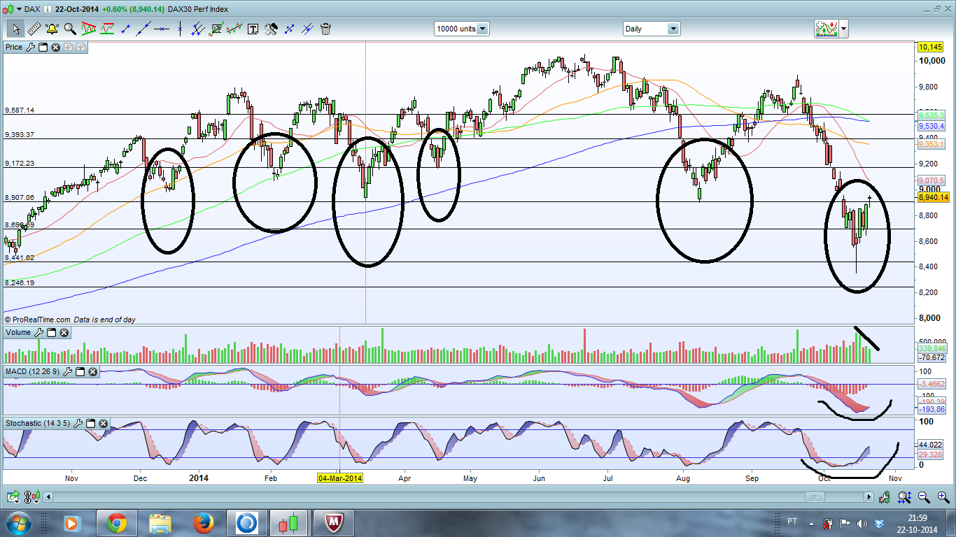 Ponto Prévio- Desde o Fim de Semana que estava relativamente optimista e o mercado está a dar-me razao e ontem...disse que estavamos a aproximar de zonas muito importantes...entre os 8900-9000 no DAX e no SP500 pus la um tracejado cor de rosa...mas o mais correcto era aquela zona que o Tio J pôs!