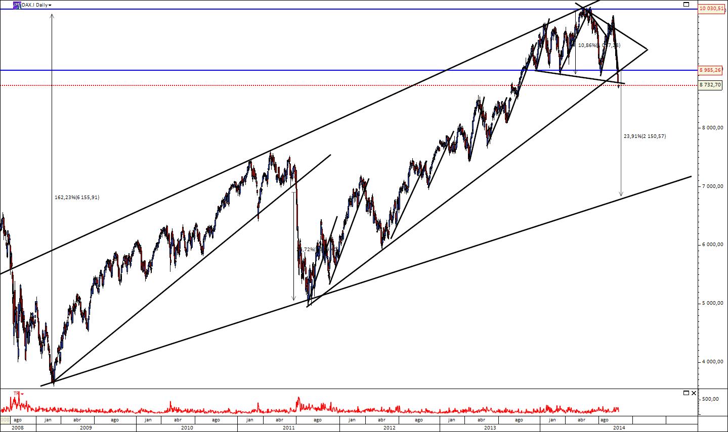 O dax pode ser fortemente condicionado pelo sp. No semanal tal como disse há 2 semanas temos em desenvolvimento uma mega broad com target que aponta pra zona dos 8000.