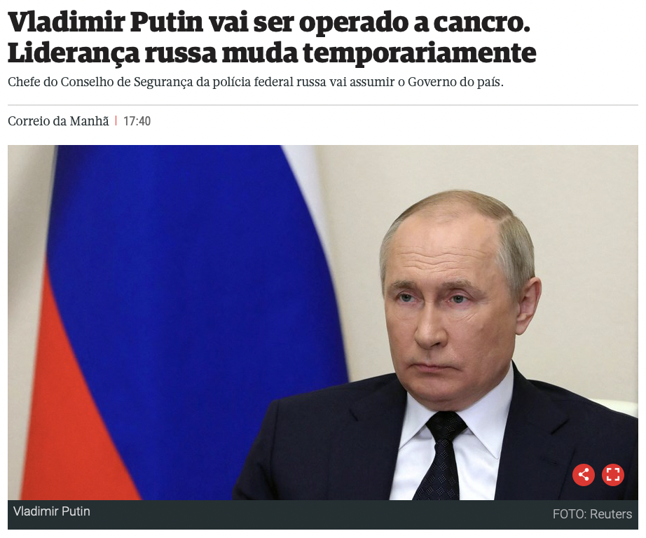 Um presidente russo com ideias imperialistas e anti-democráticas e ditatoriais, num país com capacidades nucleares atrás da antiga cortina de ferro e sem qualquer politburo (facto)