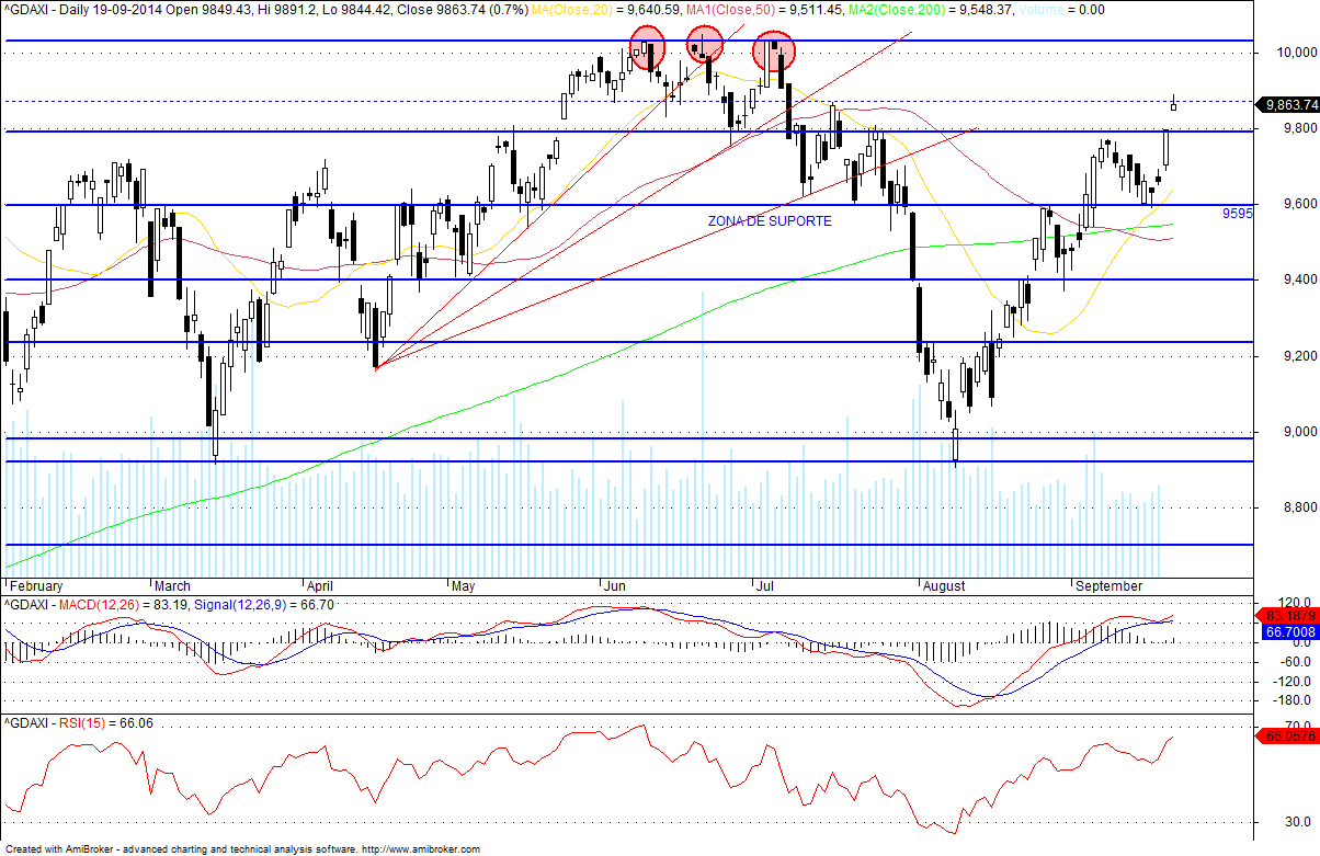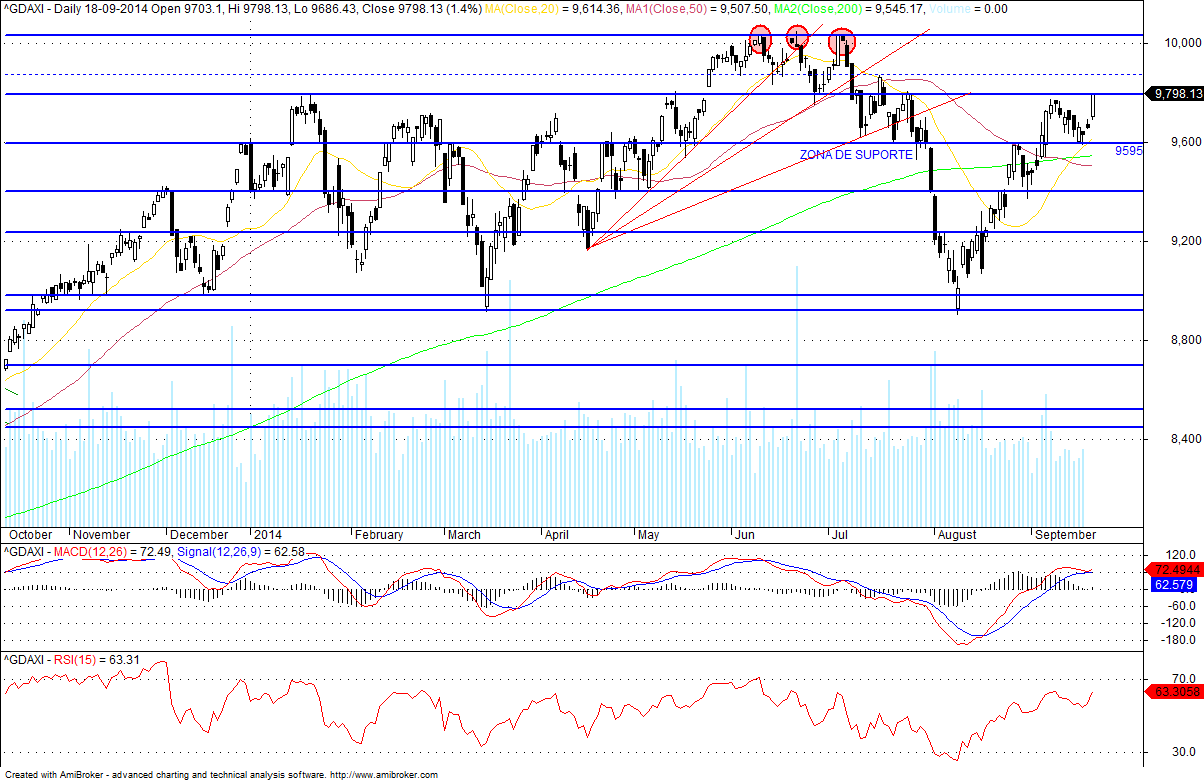 Fora do DAX. Satisfeito, antes das eleições. Prefiro não arriscar mais. O trend está a virar com a inclinação na 50 mma a ficar positiva a meio do dia, o que fortalece os sinais de ir testar máximos.