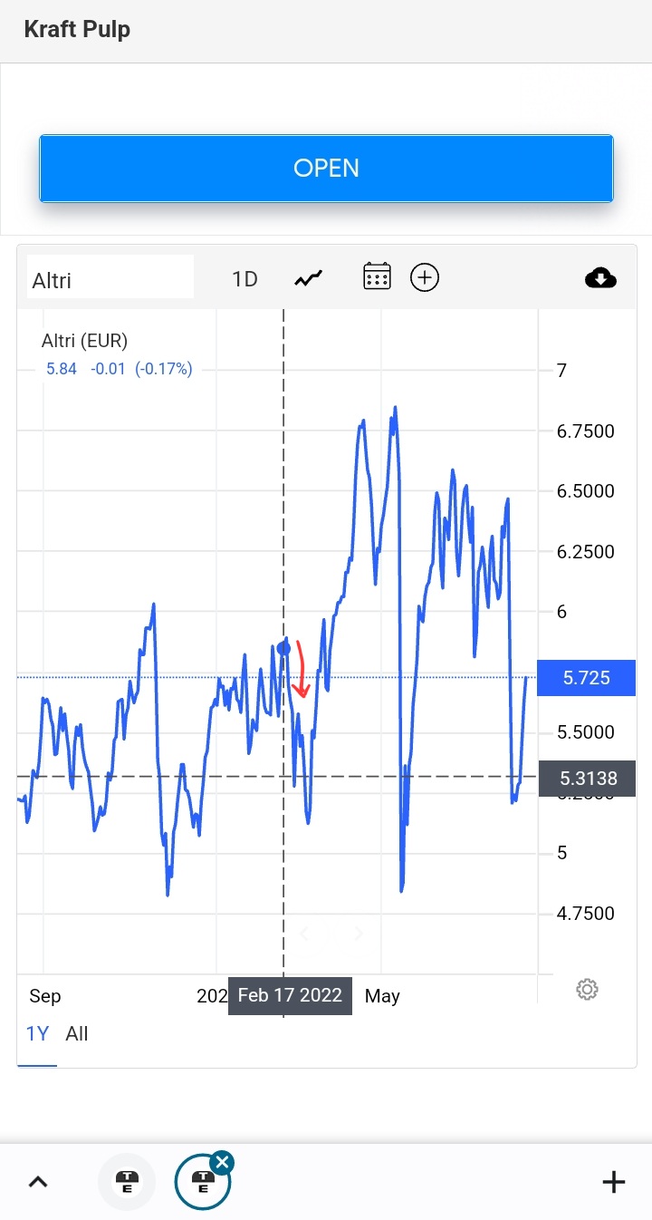 Para uma empresa cuja faturação depende, na sua quase totalidade, da venda da pasta do papel (contrariamente à NVG cuja faturação é maioritariamente de papel nas suas diversas formas) é de elementar evidência e bom senso que a evolução dos preços da pasta de papel influencia a cotação.